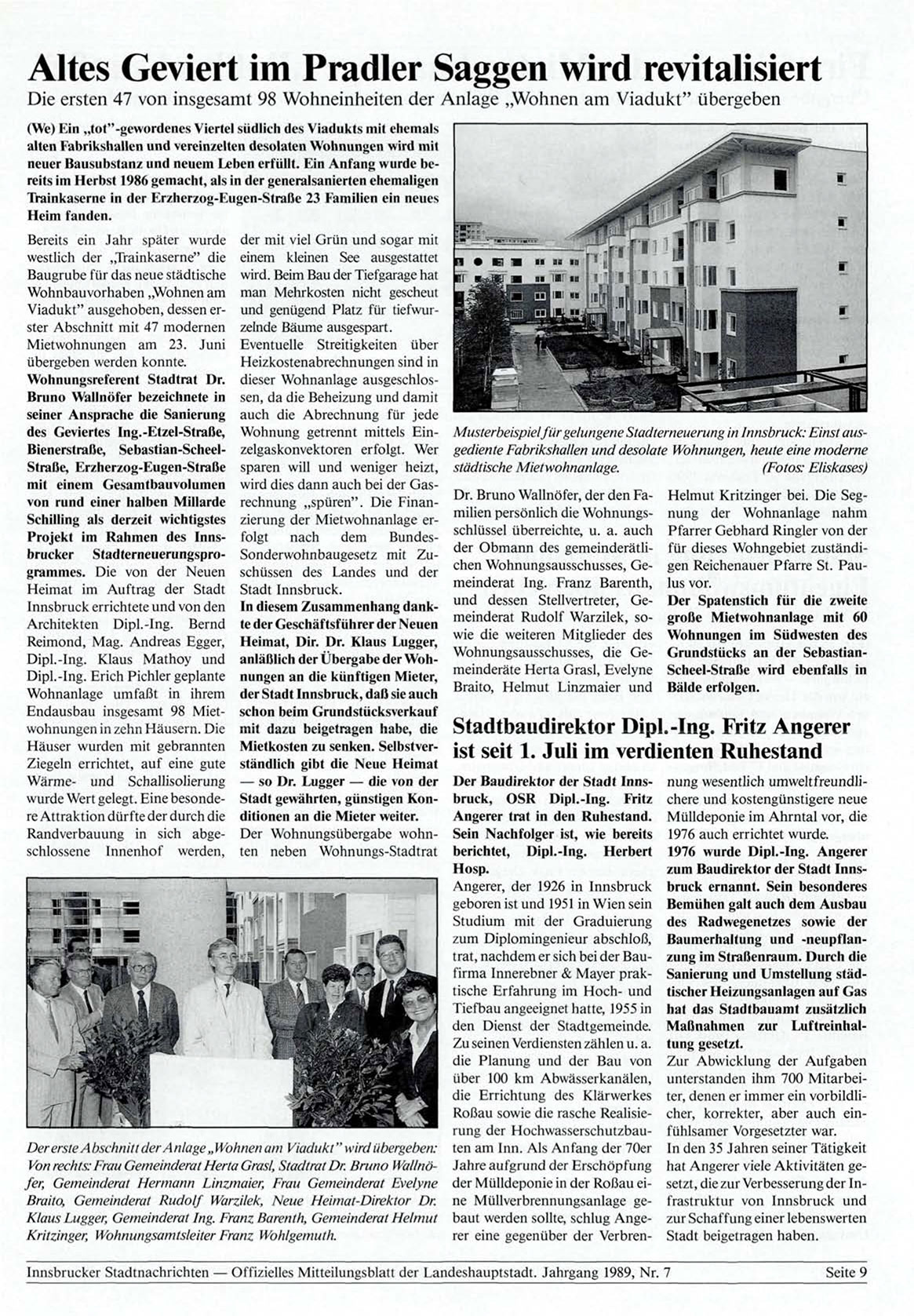Innsbrucker Stadtnachrichten — Offizielles Mitteilungsblatt der Landeshauptstadt. Jahrgang 1989, Nr. 7