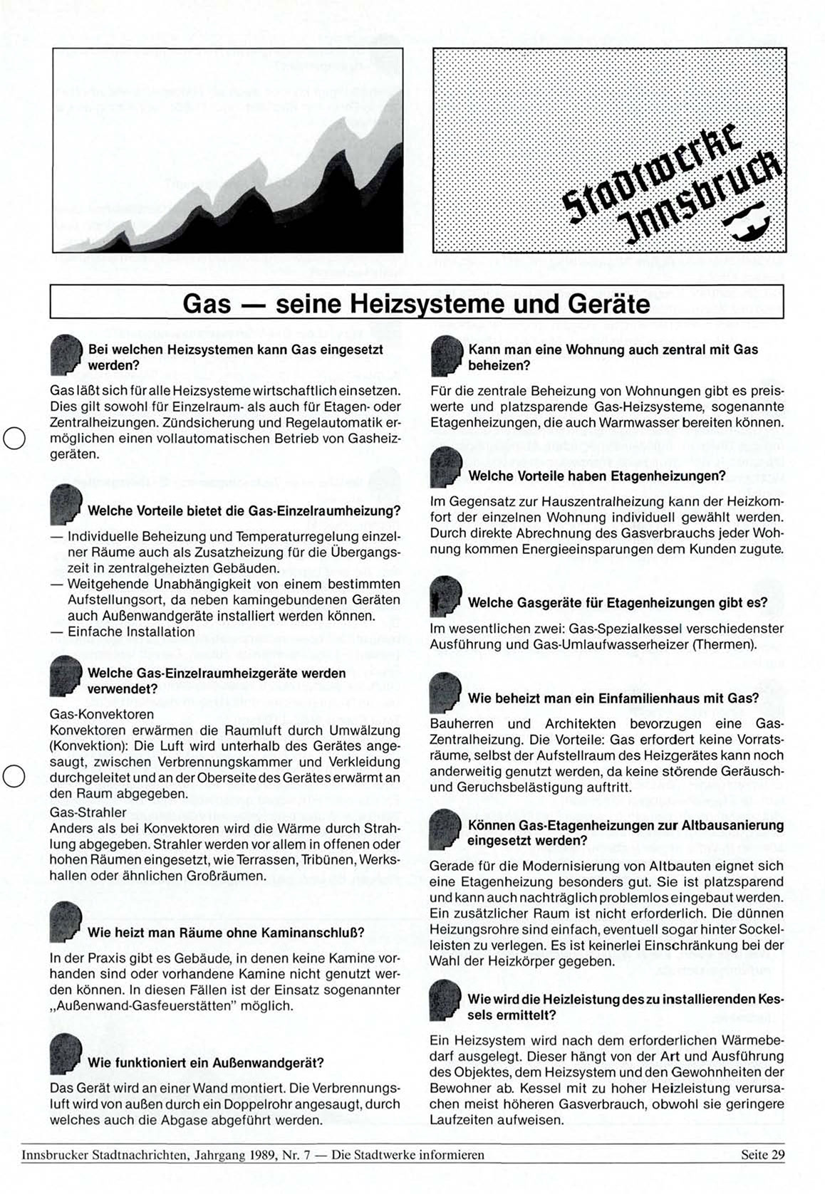 Innsbrucker Stadtnachrichten, Jahrgang 1989, Nr. 7 — Die Stadtwerke informieren