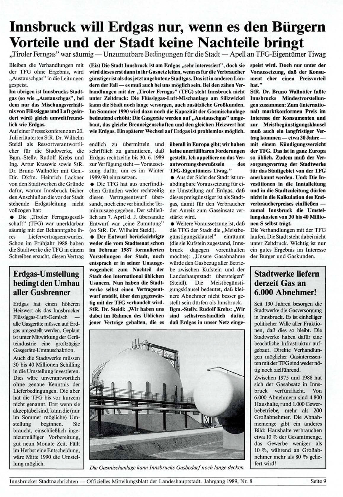 Innsbrucker Stadtnachrichten — Offizielles Mitteilungsblatt der Landeshauptstadt. Jahrgang 1989, Nr. 8