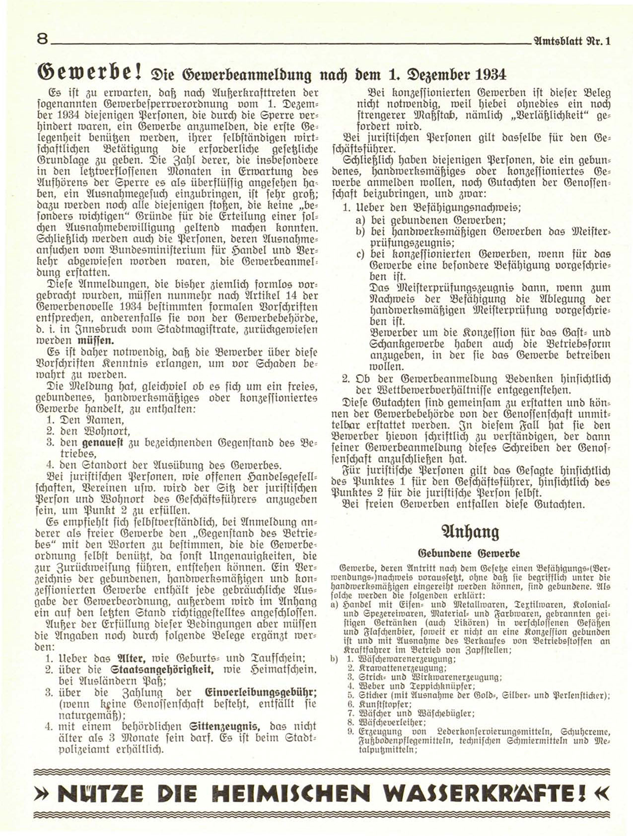 Die Gewerbeanmeldung nach dem 1. Dezember 1934