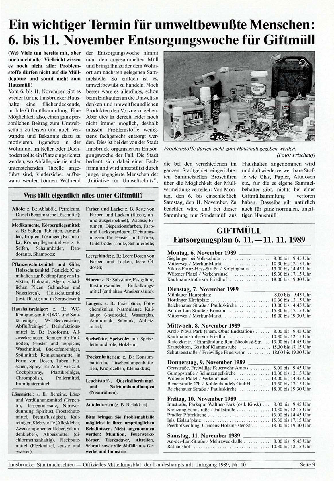 Innsbrucker Stadtnachrichten — Offizielles Mitteilungsblatt der Landeshauptstadt. Jahrgang 1989, Nr. 10