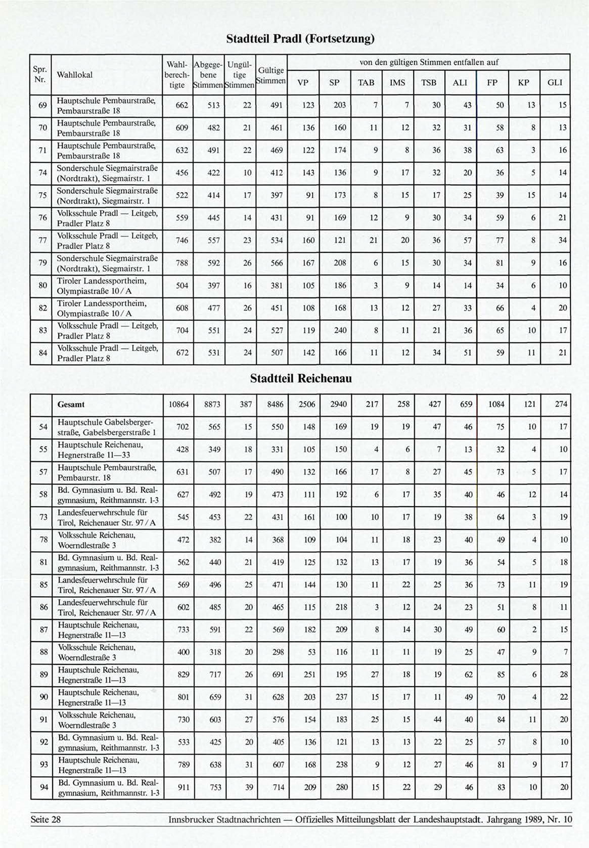 Innsbrucker Stadtnachrichten — Offizielles Mitteilungsblatt der Landeshauptstadt. Jahrgang 1989, Nr. 10