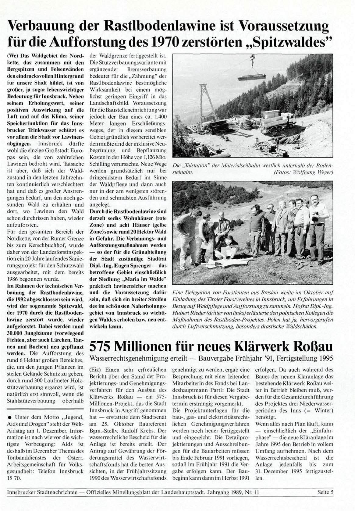 Innsbrucker Stadtnachrichten — Offizielles Mitteilungsblatt der Landeshauptstadt. Jahrgang 1989, Nr. 11