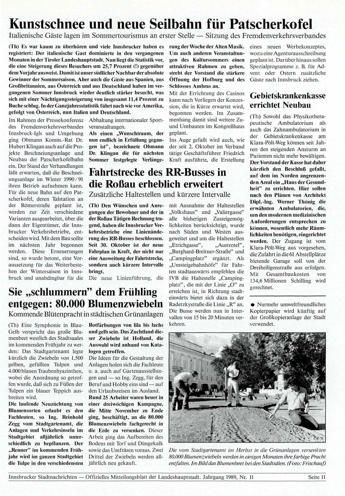 Innsbrucker Stadtnachrichten — Offizielles Mitteilungsblatt der Landeshauptstadt. Jahrgang 1989, Nr. 11