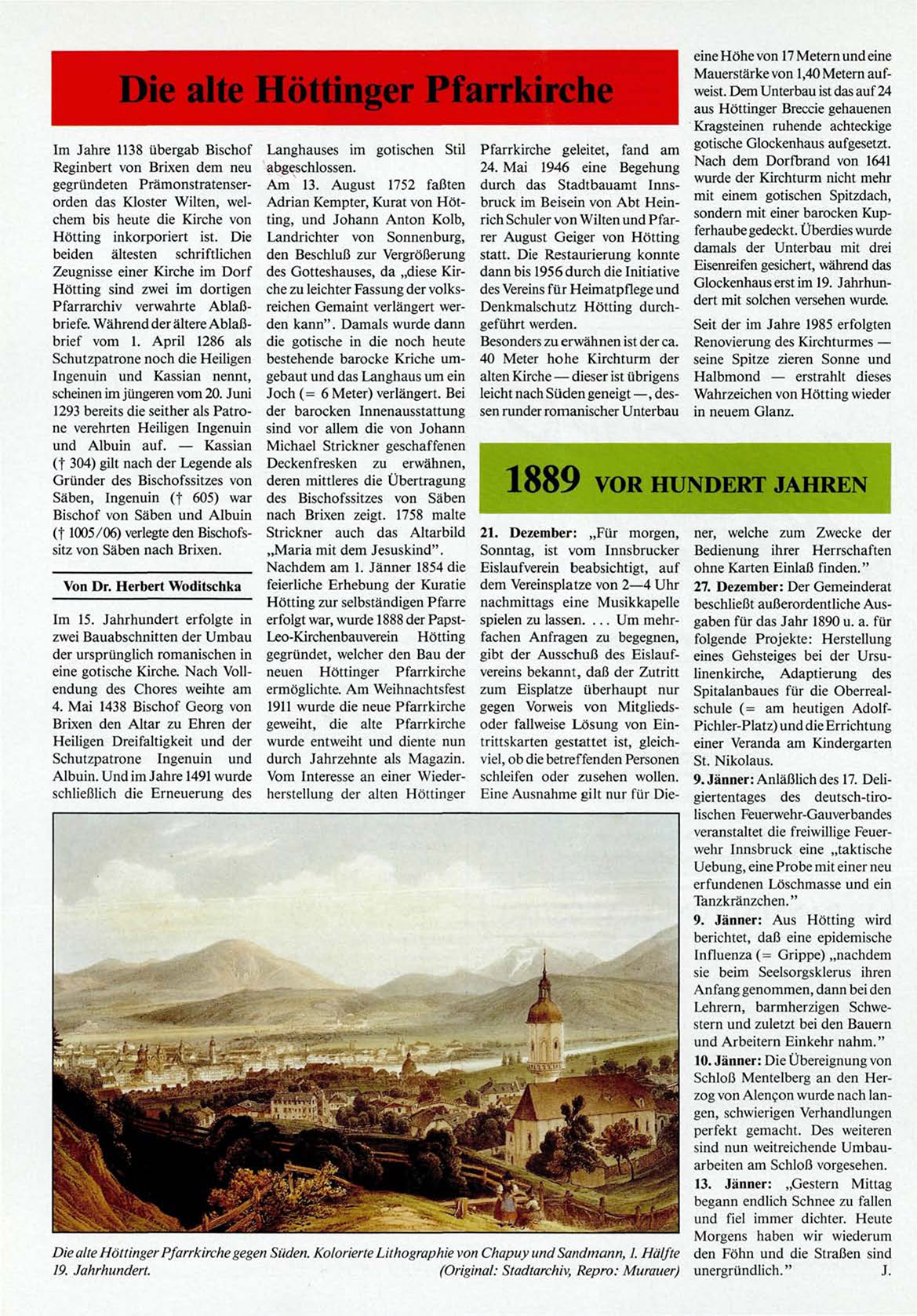 Albuin. Und im Jahre 1491 wurde Vom Interesse an einer Wiederschließlich die Erneuerung des herstellung der alten Höttinger