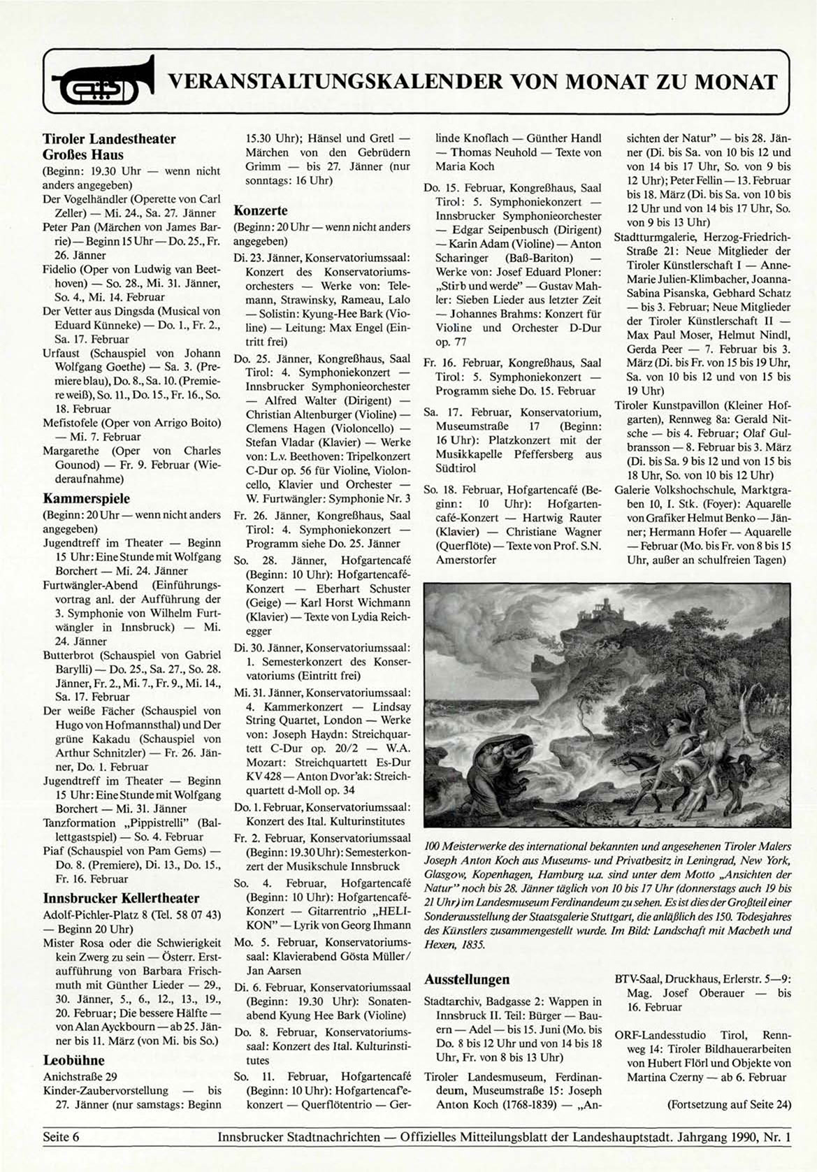 Innsbrucker Stadtnachrichten — Offizielles Mitteilungsblatt der Landeshauptstadt. Jahrgang 1990, Nr. 1