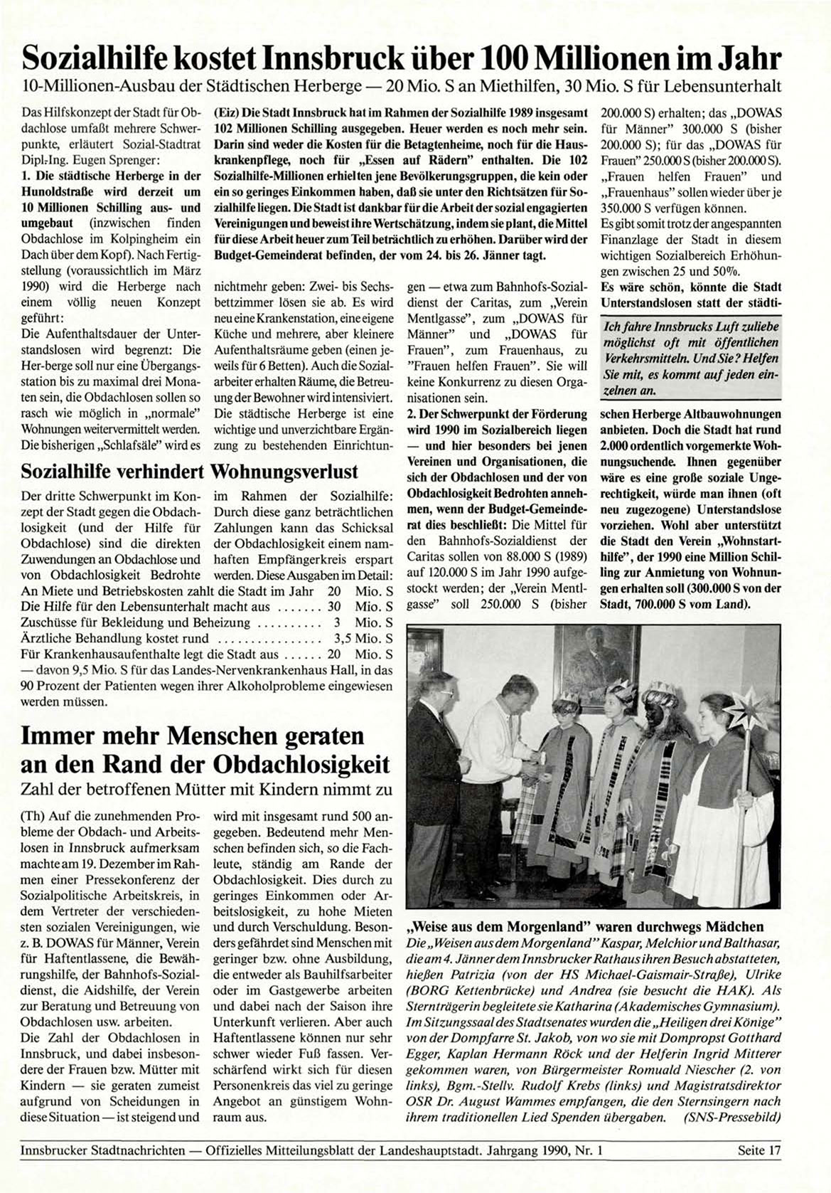 Innsbrucker Stadtnachrichten — Offizielles Mitteilungsblatt der Landeshauptstadt. Jahrgang 1990, Nr. 1