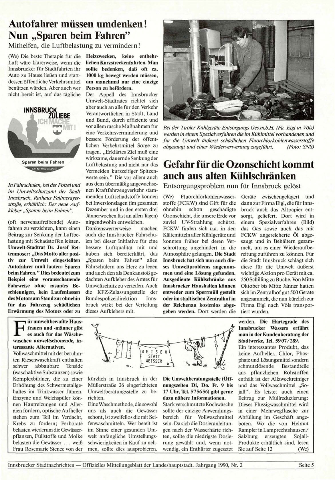 Innsbrucker Stadtnachrichten — Offizielles Mitteilungsblatt der Landeshauptstadt. Jahrgang 1990, Nr. 2