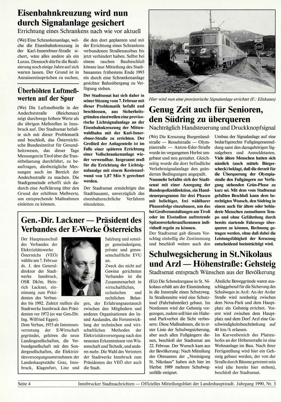 Innsbrucker Stadtnachrichten — Offizielles Mitteilungsblatt der Landeshauptstadt. Jahrgang 1990, Nr. 3