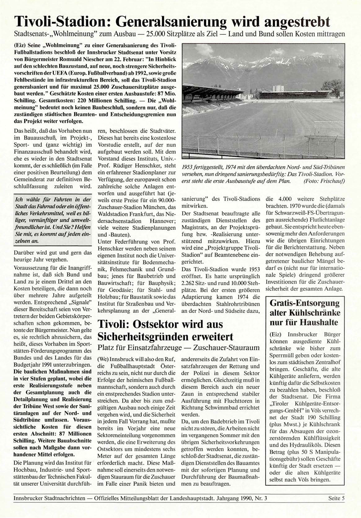 Innsbrucker Stadtnachrichten — Offizielles Mitteilungsblatt der Landeshauptstadt. Jahrgang 1990, Nr. 3