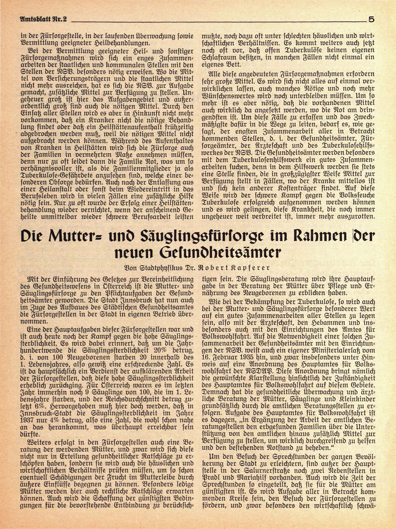 Säuglingsfürsorge zu den Pflichtaufgaben der Gesundheitsämter geworden. Die Stadt Innsbruck hat nun auch