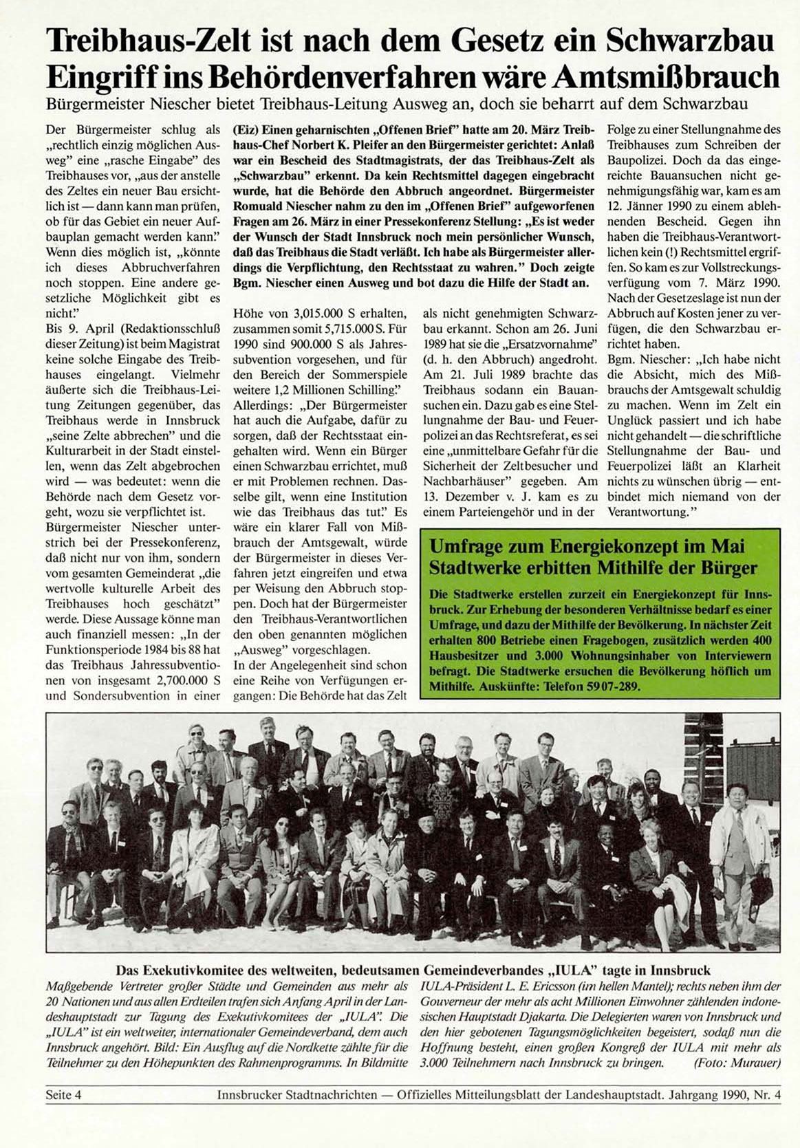 Innsbrucker Stadtnachrichten — Offizielles Mitteilungsblatt der Landeshauptstadt. Jahrgang 1990, Nr. 4