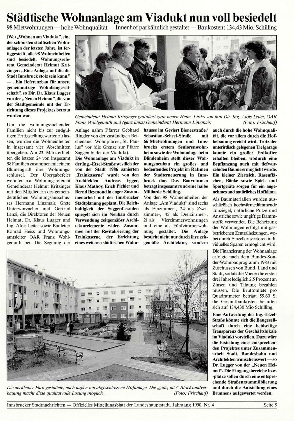Innsbrucker Stadtnachrichten — Offizielles Mitteilungsblatt der Landeshauptstadt. Jahrgang 1990, Nr. 4