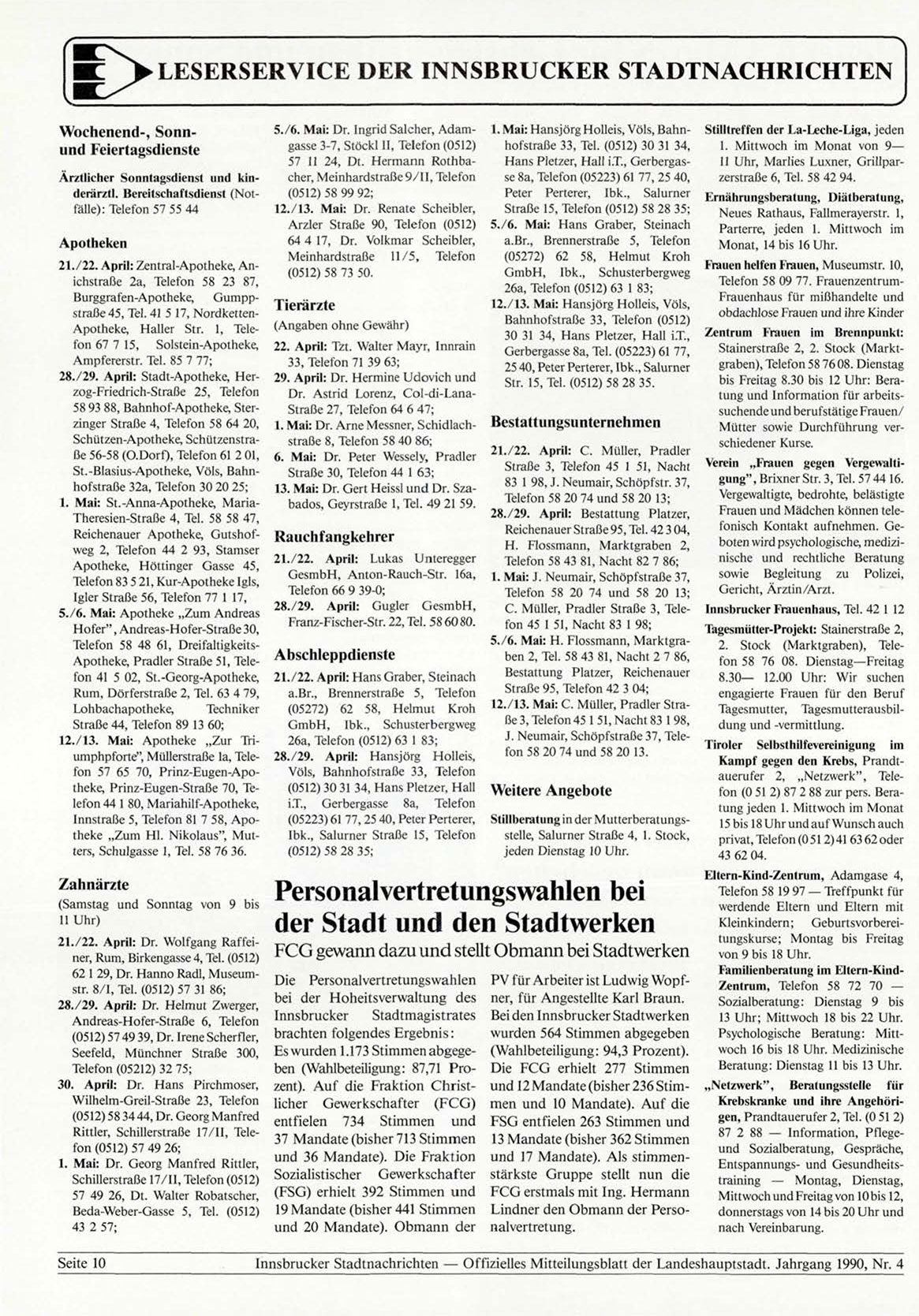 Innsbrucker Stadtnachrichten — Offizielles Mitteilungsblatt der Landeshauptstadt. Jahrgang 1990, Nr. 4