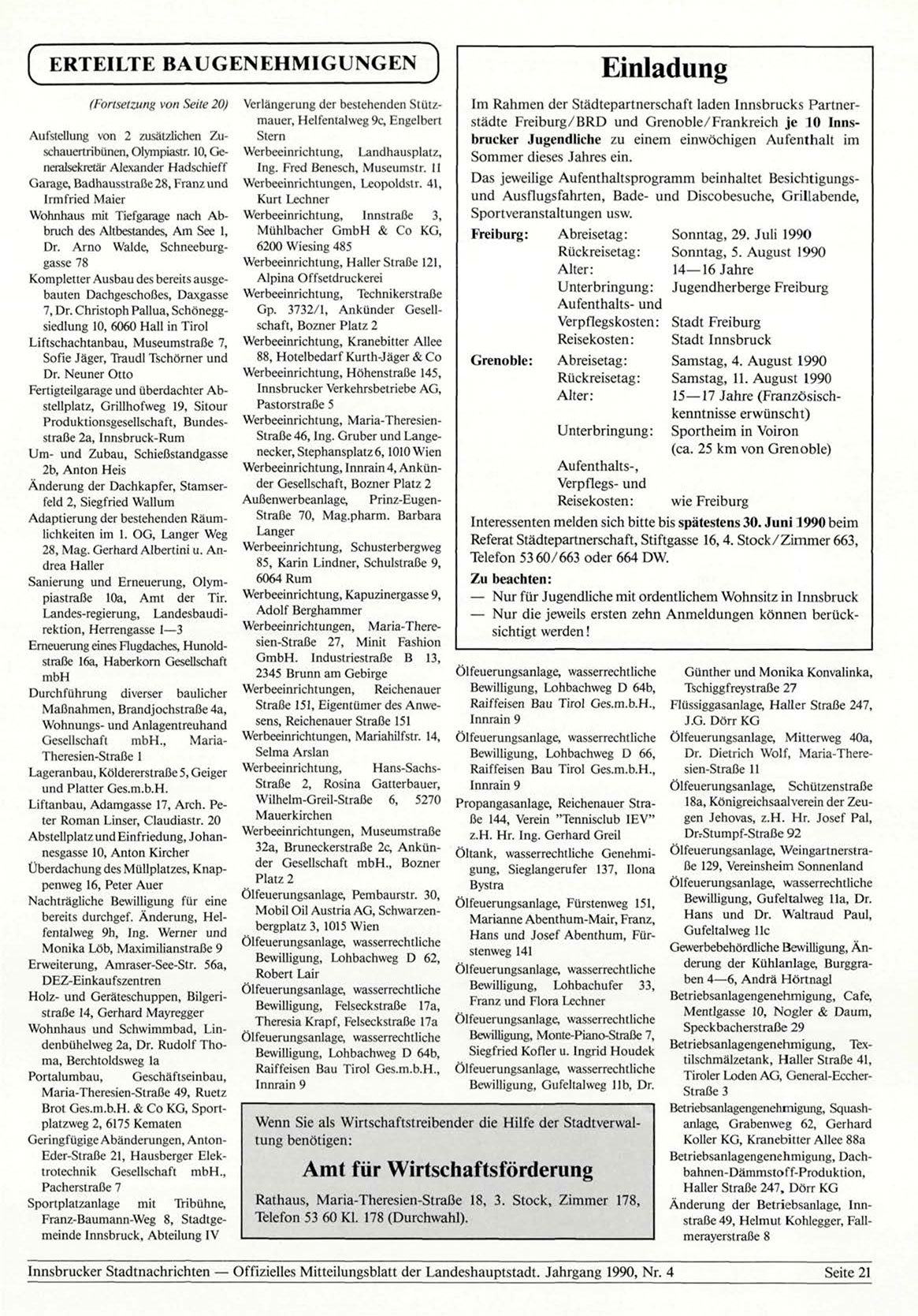 Innsbrucker Stadtnachrichten — Offizielles Mitteilungsblatt der Landeshauptstadt. Jahrgang 1990, Nr. 4