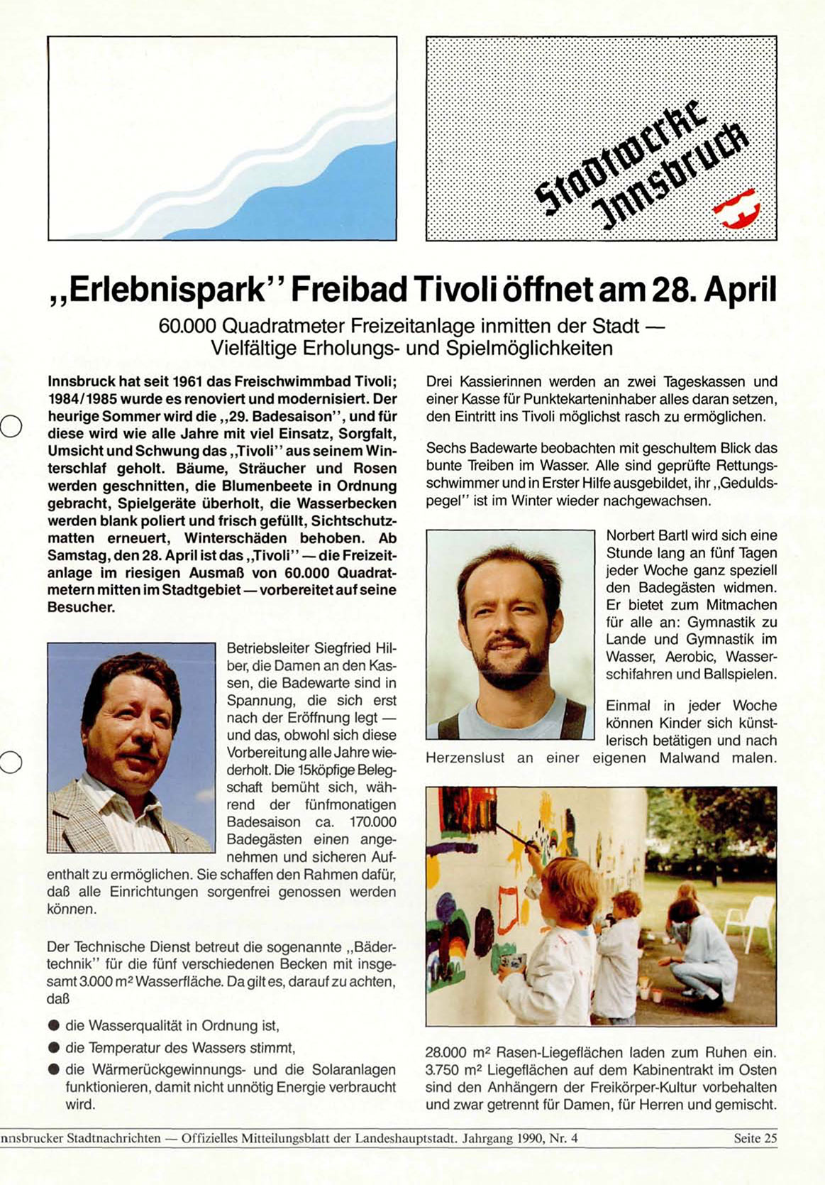 nnsbrucker Stadtnachrichten — Offizielles Mitteilungsblatt der Landeshauptstadt. Jahrgang 1990, Nr. 4