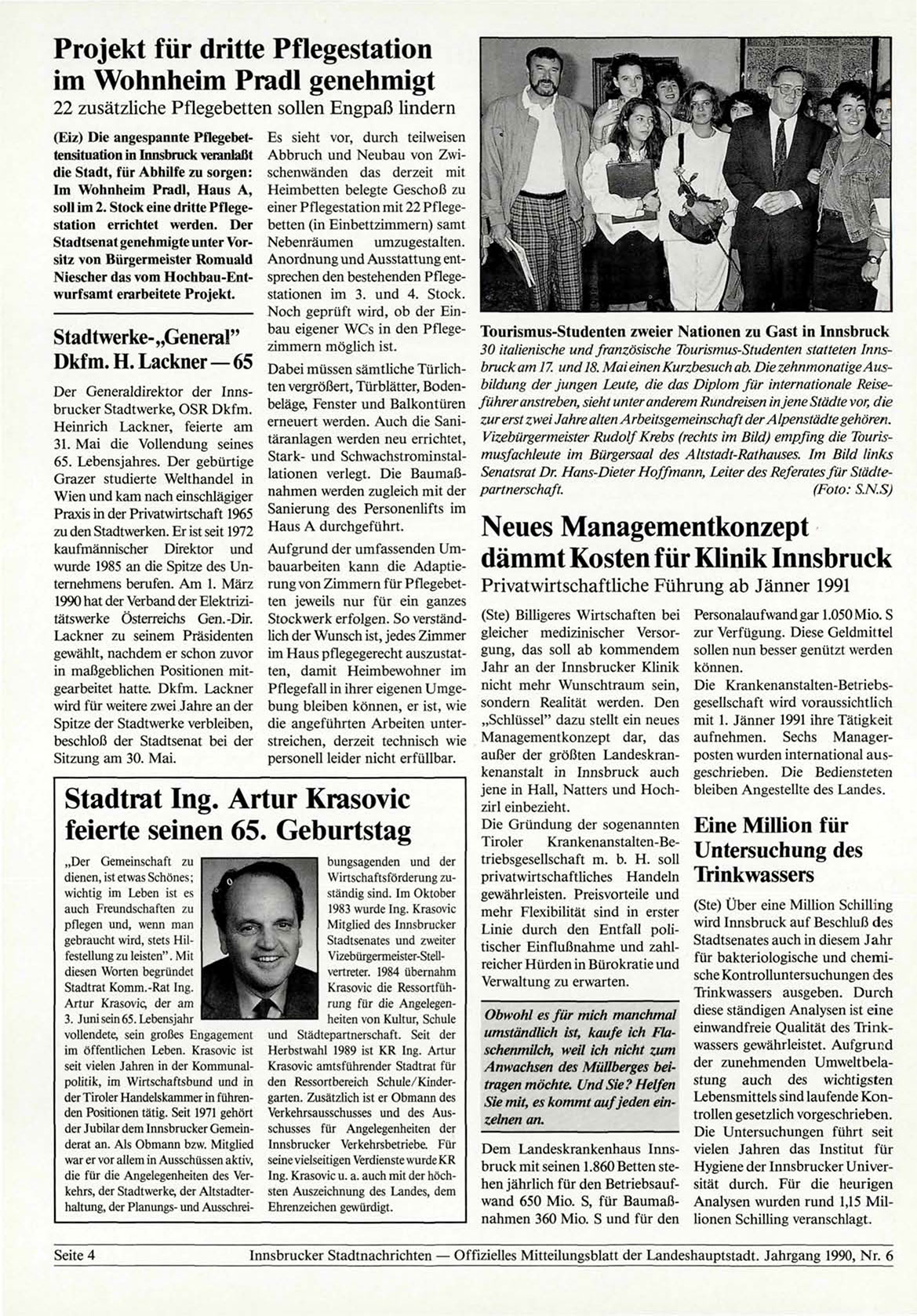 Innsbrucker Stadtnachrichten — Offizielles Mitteilungsblatt der Landeshauptstadt. Jahrgang 1990, Nr. 6