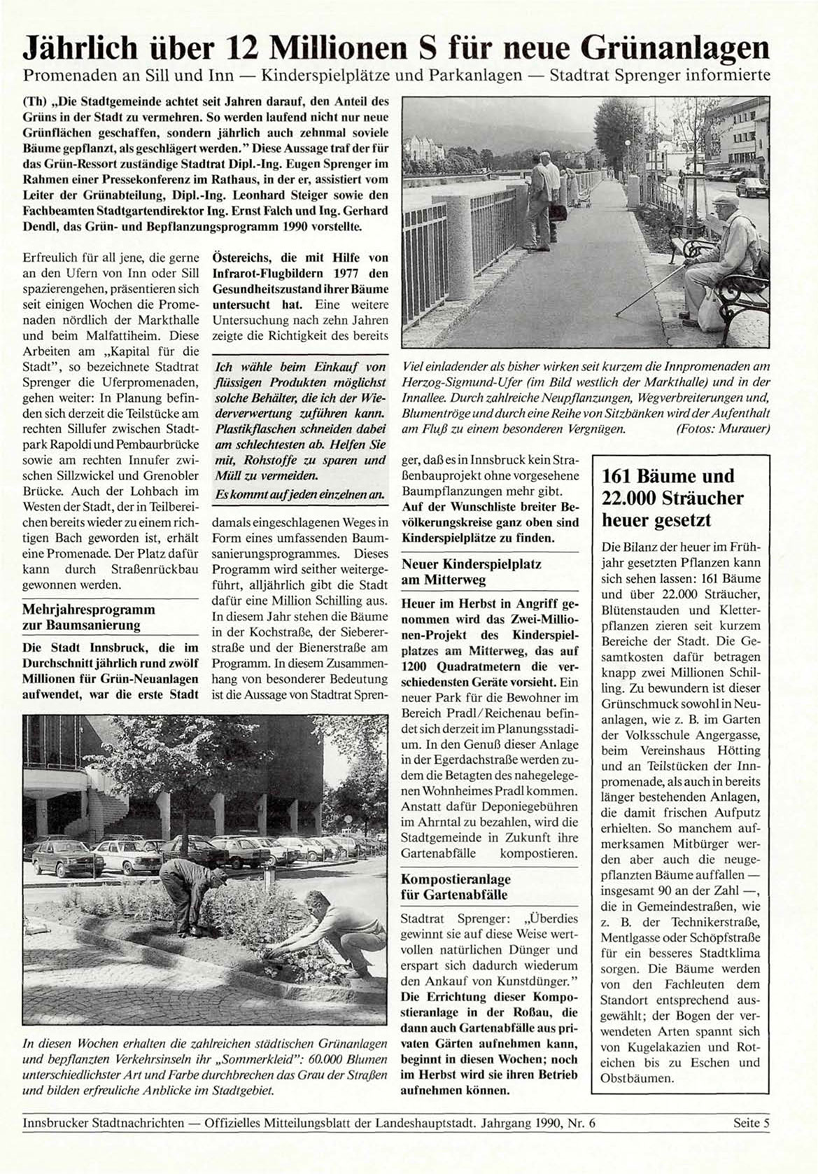 Innsbrucker Stadtnachrichten — Offizielles Mitteilungsblatt der Landeshauptstadt. Jahrgang 1990, Nr. 6