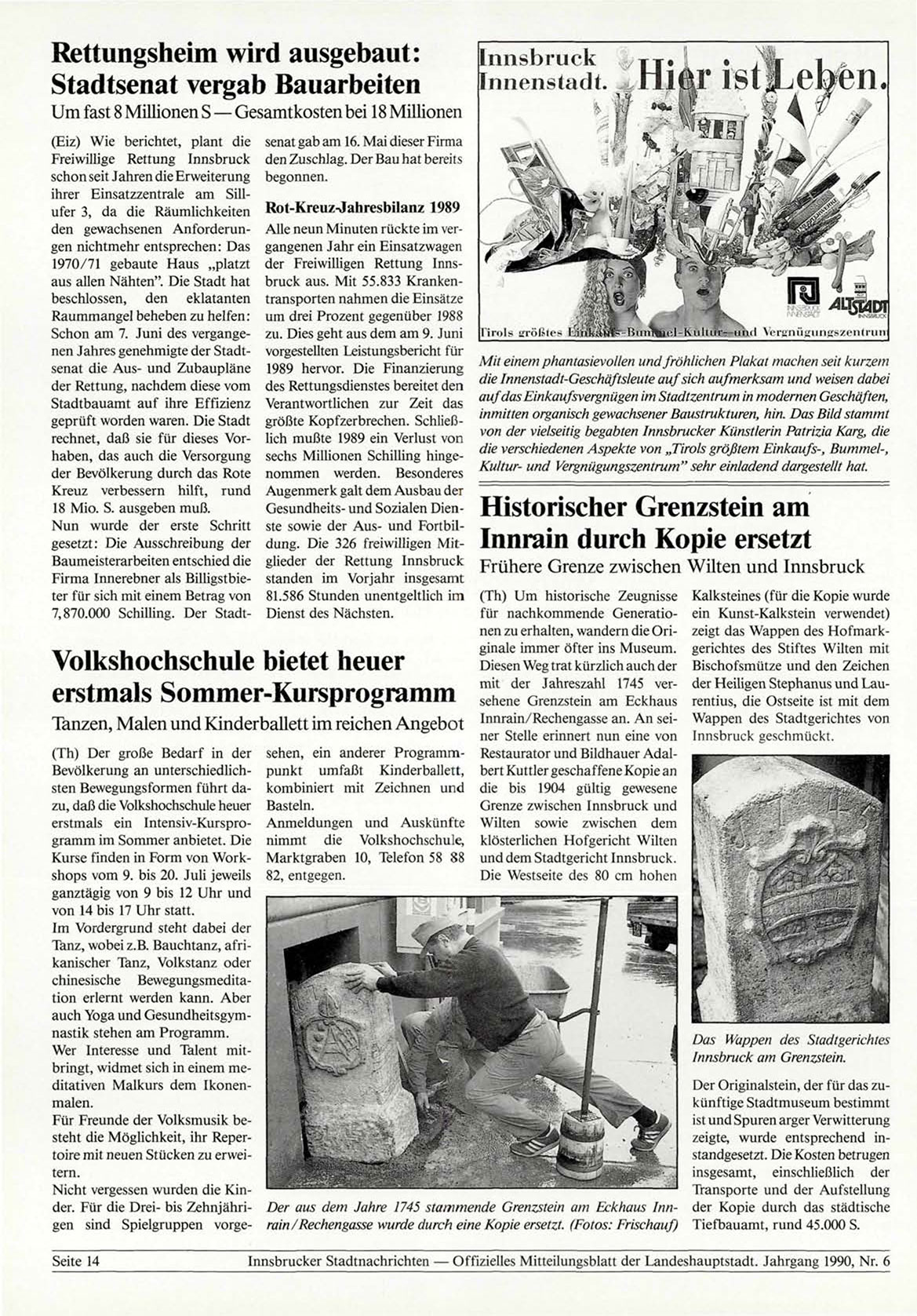 Innsbrucker Stadtnachrichten — Offizielles Mitteilungsblatt der Landeshauptstadt. Jahrgang 1990, Nr. 6
