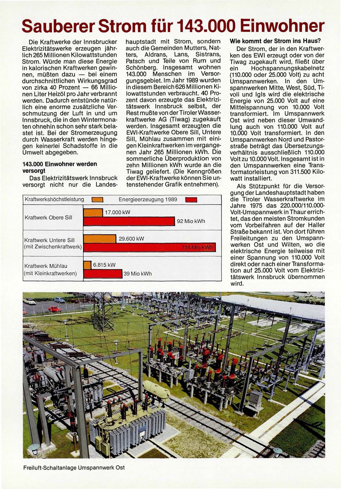 Jahre 1975 das 220.000/110.000Volt-Umspannwerk in Thaur errichtet, das den meisten Stromkunden