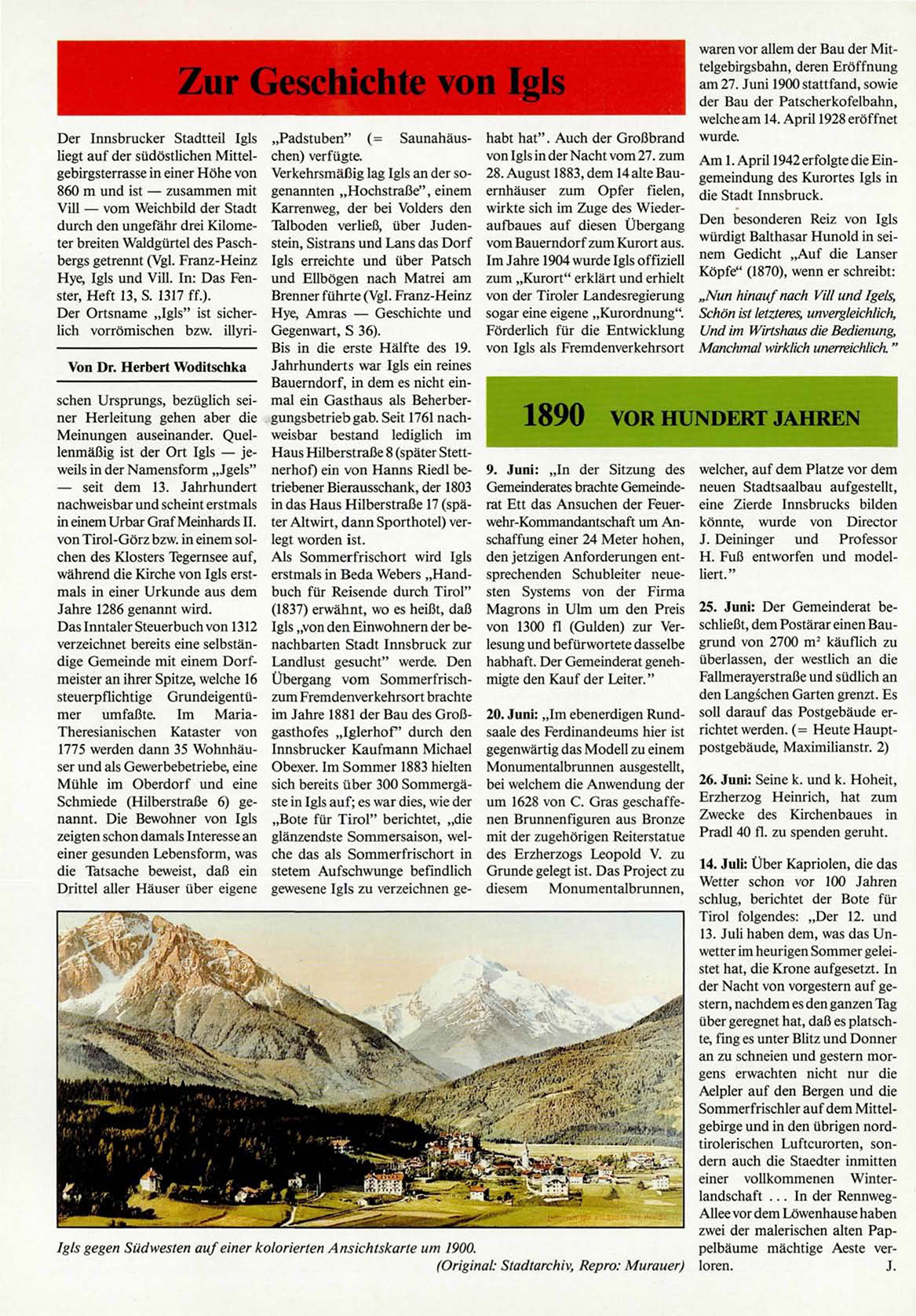 Hye, Igls und Vill. In: Das Fenster, Heft 13, S. 1317 ff.).