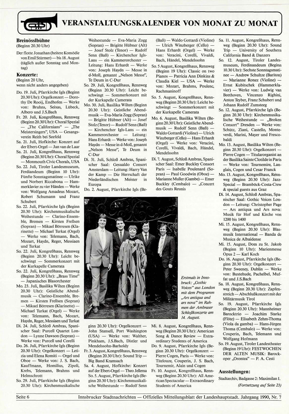 Innsbrucker Stadtnachrichten — Offizielles Mitteilungsblatt der Landeshauptstadt. Jahrgang 1990, Nr. 7