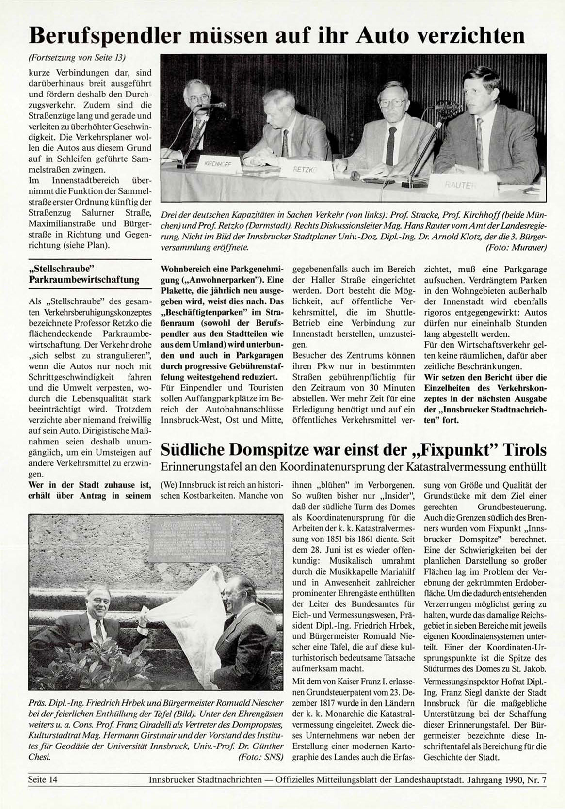 Innsbrucker Stadtnachrichten — Offizielles Mitteilungsblatt der Landeshauptstadt. Jahrgang 1990, Nr. 7