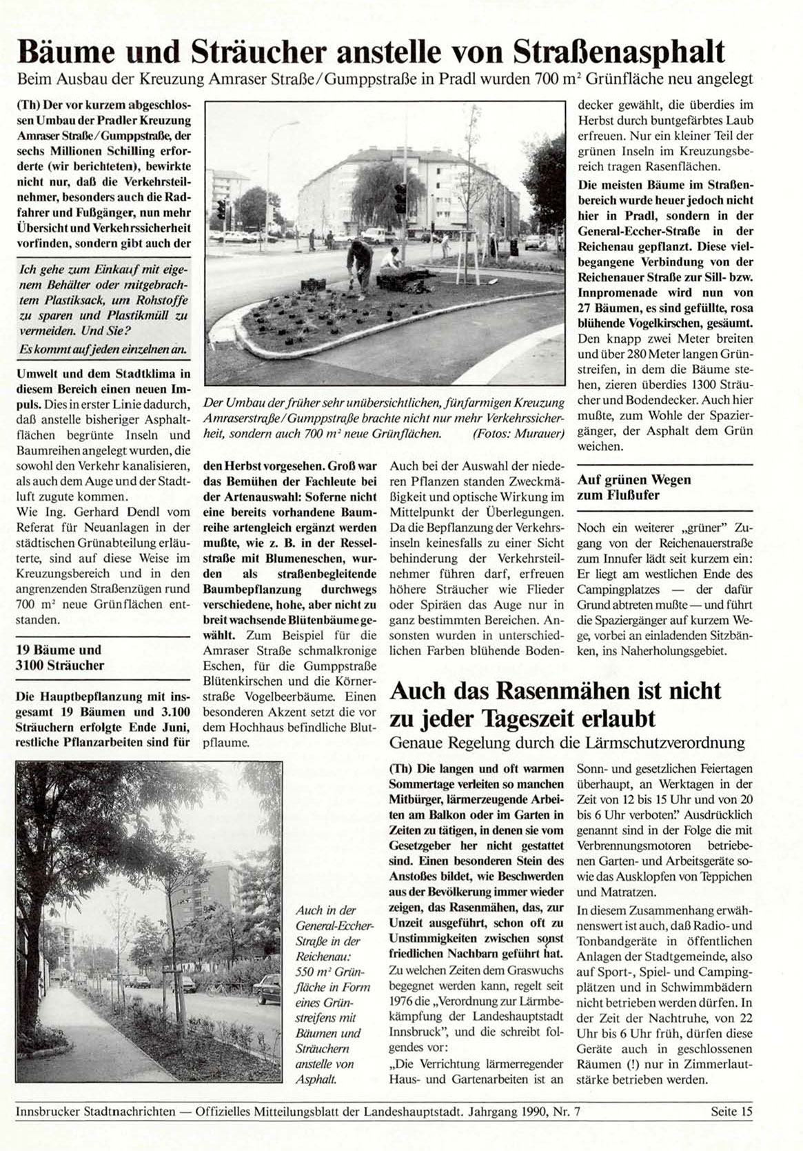 Innsbrucker Stadtnachrichten — Offizielles Mitteilungsblatt der Landeshauptstadt. Jahrgang 1990, Nr. 7