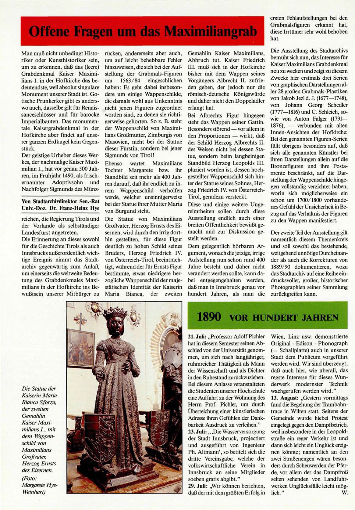um einerseits die weltweite Bedeutung des Grabdenkmales Maximilians in der Hofkirche ins Bewußtsein unserer Mitbürger zu