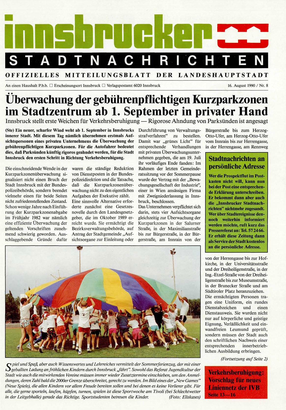 dies, daß Parksünden künftig rigoros geahndet werden, für die Stadt mit privaten ÜberwachungsunterInnsbruck den ersten Schritt in Richtung Verkehrsberuhigung.
