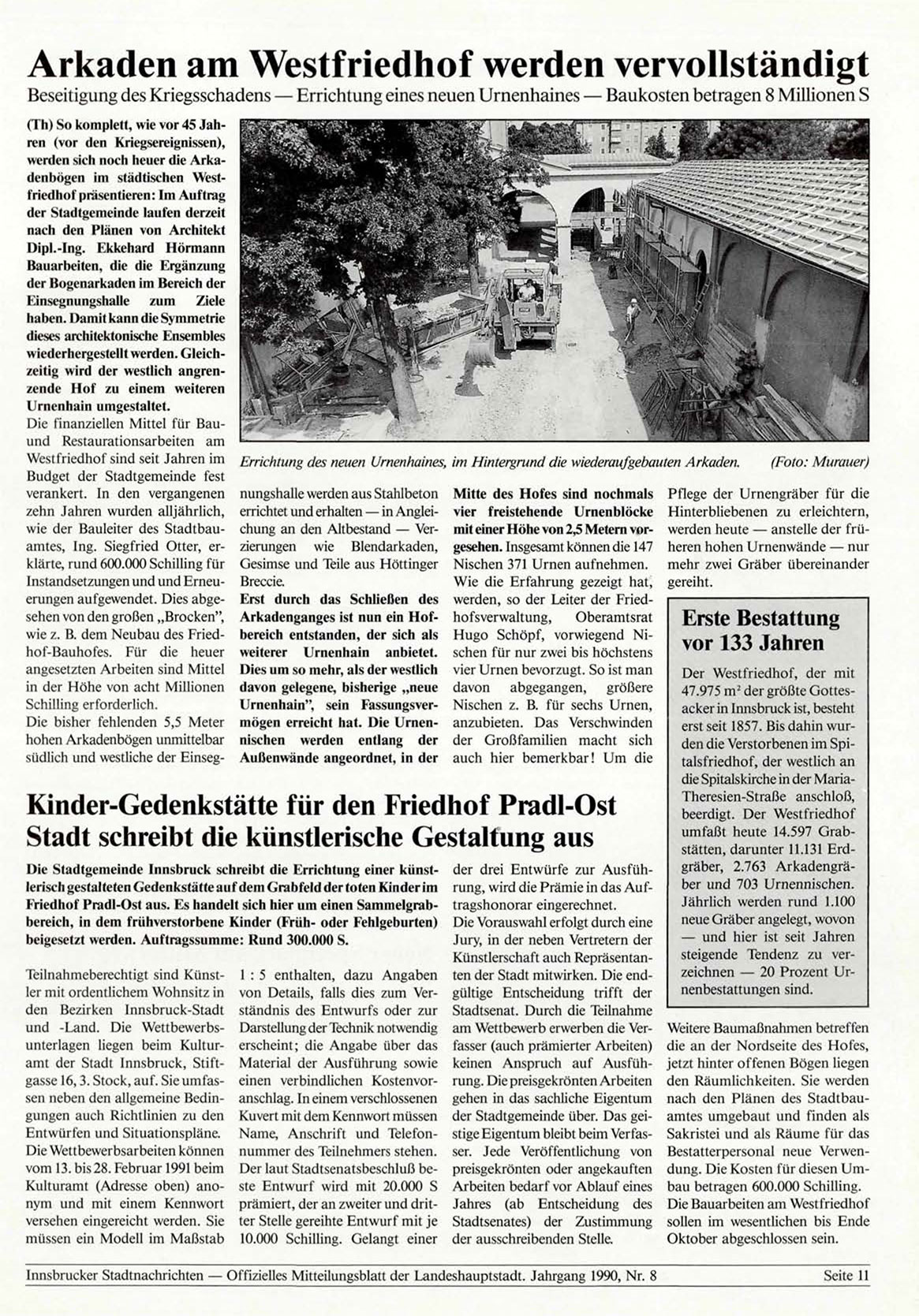 Innsbrucker Stadtnachrichten — Offizielles Mitteilungsblatt der Landeshauptstadt. Jahrgang 1990, Nr. 8