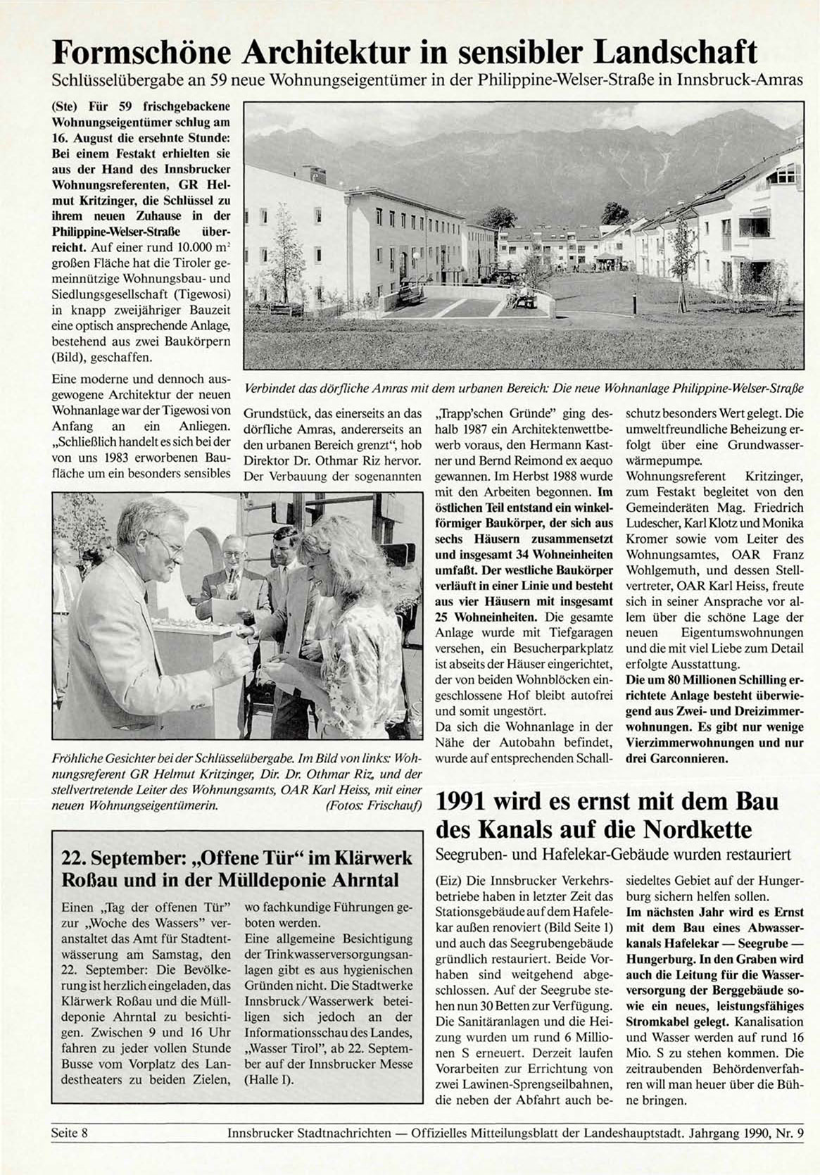 Innsbrucker Stadtnachrichten — Offizielles Mitteilungsblatt der Landeshauptstadt. Jahrgang 1990, Nr. 9