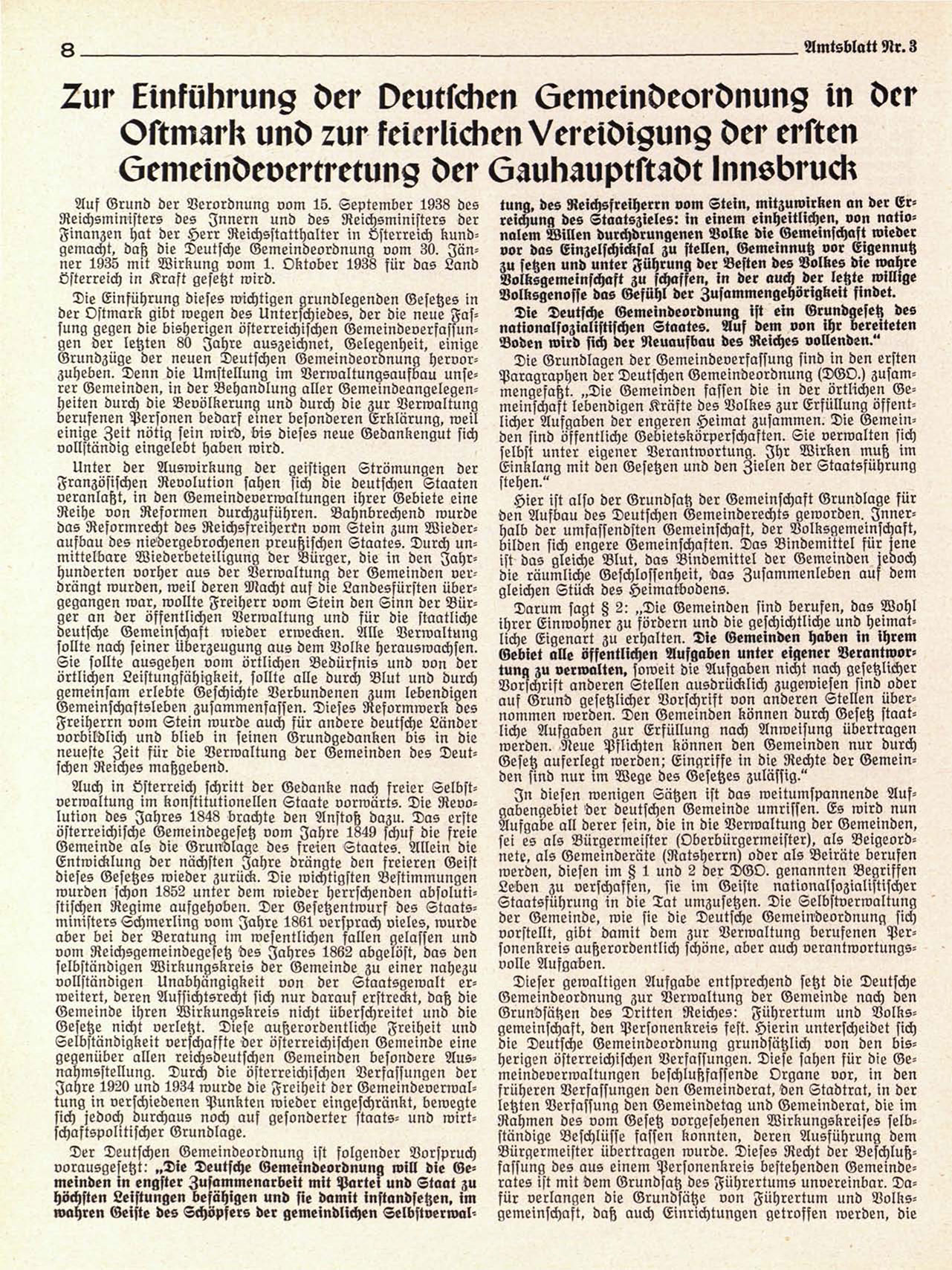 der Ostmark gibt wegen des Unterschiedes, der die neue Fassung gegen die bisherigen österreichischen Gemeindeverfassungen der letzten 80 Jahre auszeichnet, Gelegenheit, einige