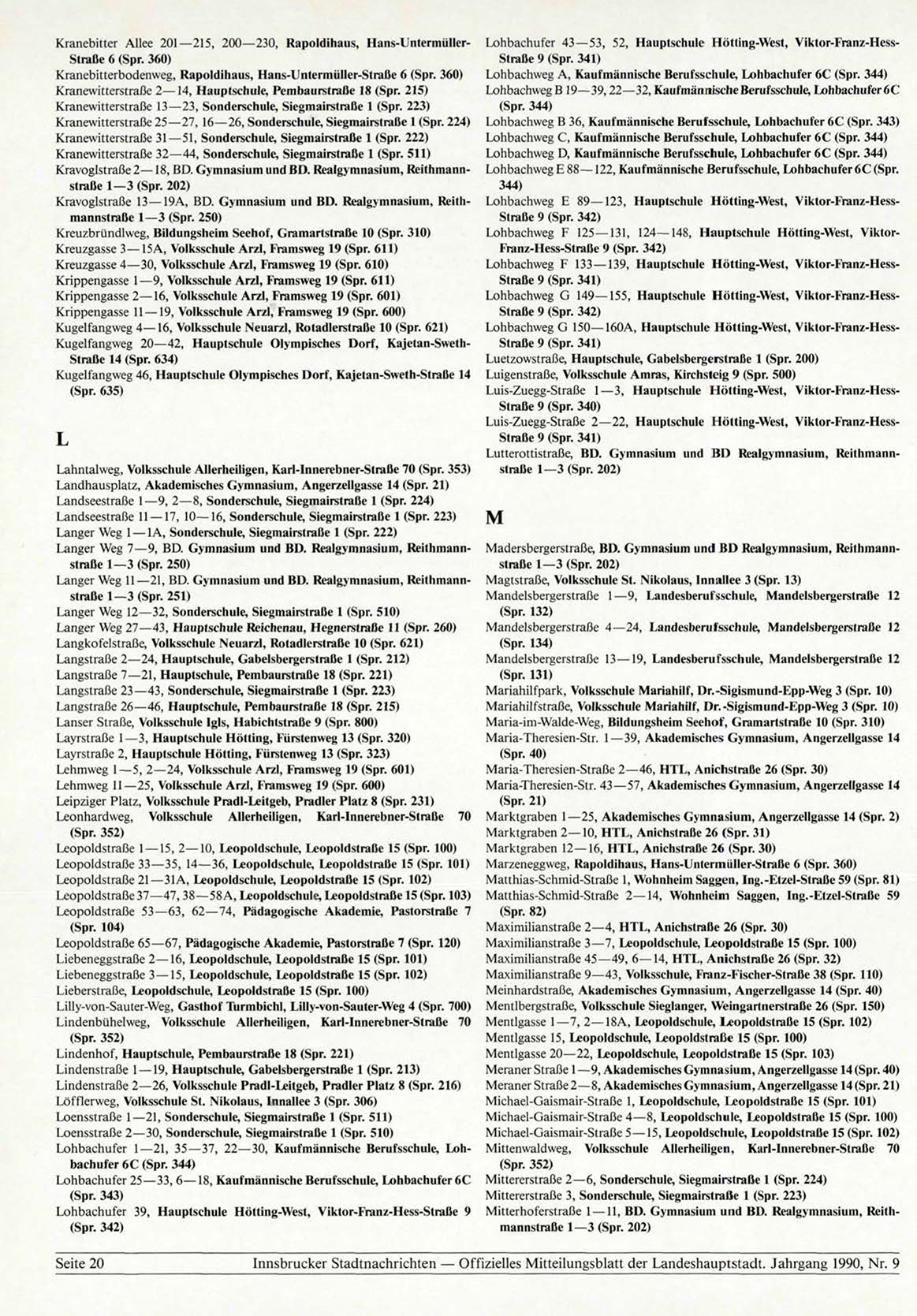 Innsbrucker Stadtnachrichten — Offizielles Mitteilungsblatt der Landeshauptstadt. Jahrgang 1990, Nr. 9