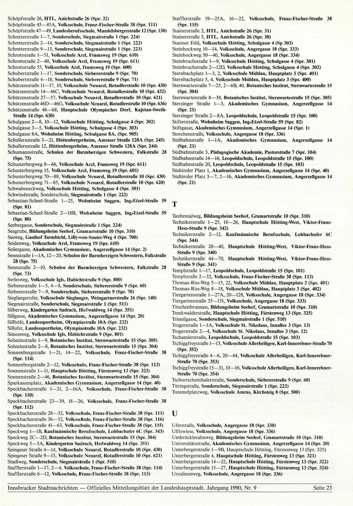 Innsbrucker Stadtnachrichten — Offizielles Mitteilungsblatt der Landeshauptstadt. Jahrgang 1990, Nr. 9