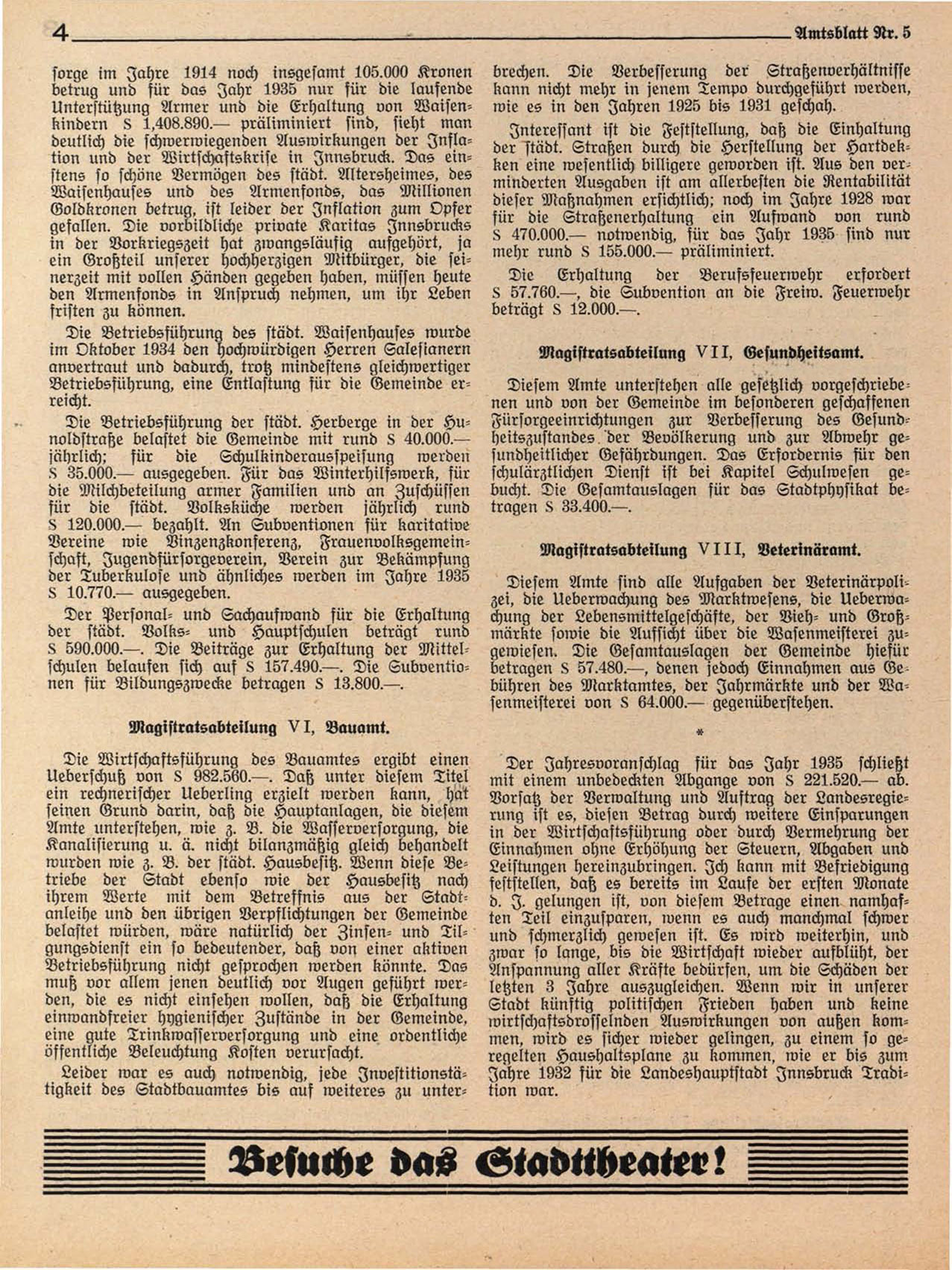 deutlich die schwerwiegenden Auswirkungen der Inflation und der Wirtschaftskrise in Innsbruck. Das einstens so schöne Vermögen des städt. Altersheimes, des