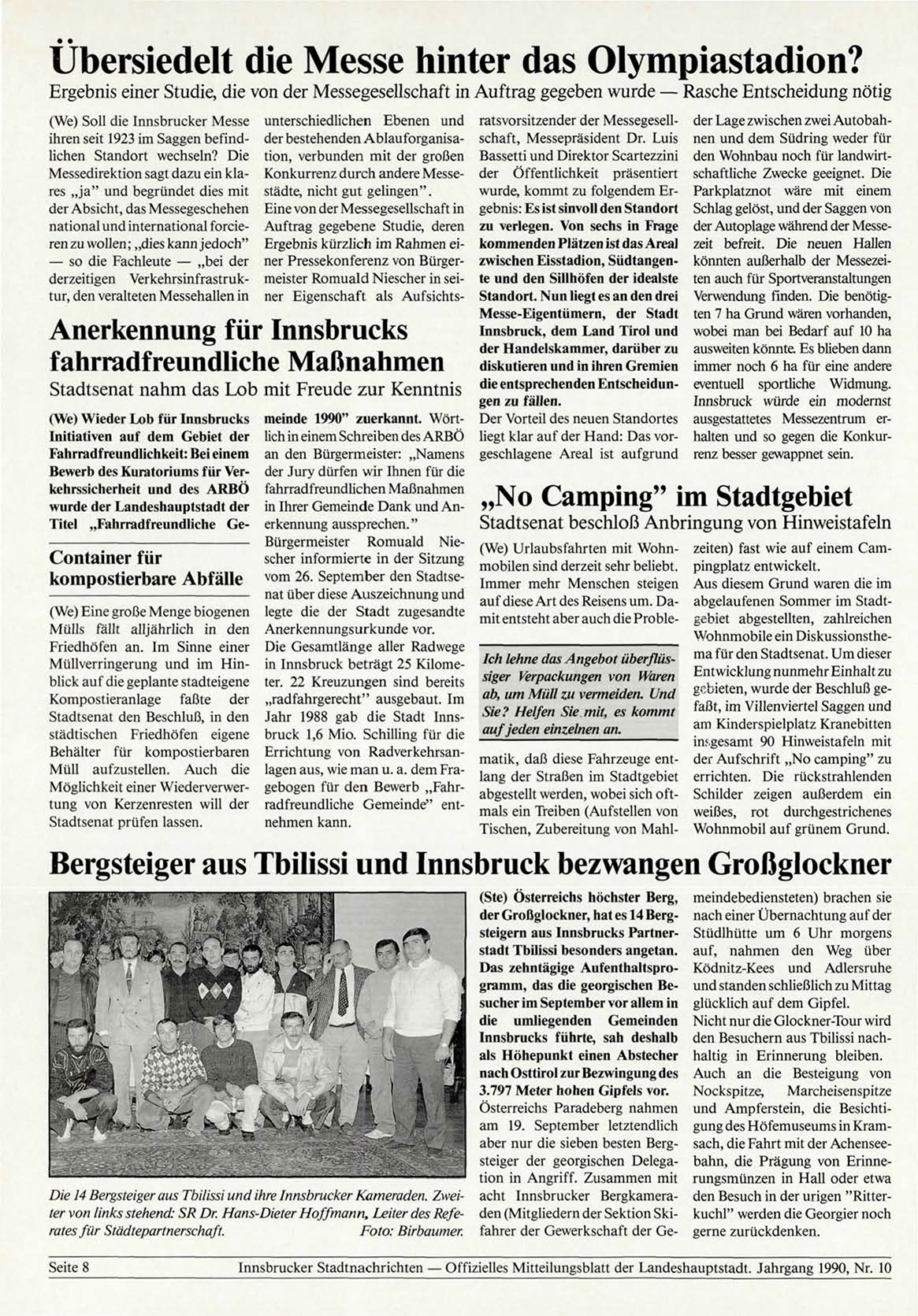 Innsbrucker Stadtnachrichten — Offizielles Mitteilungsblatt der Landeshauptstadt. Jahrgang 1990, Nr. 10