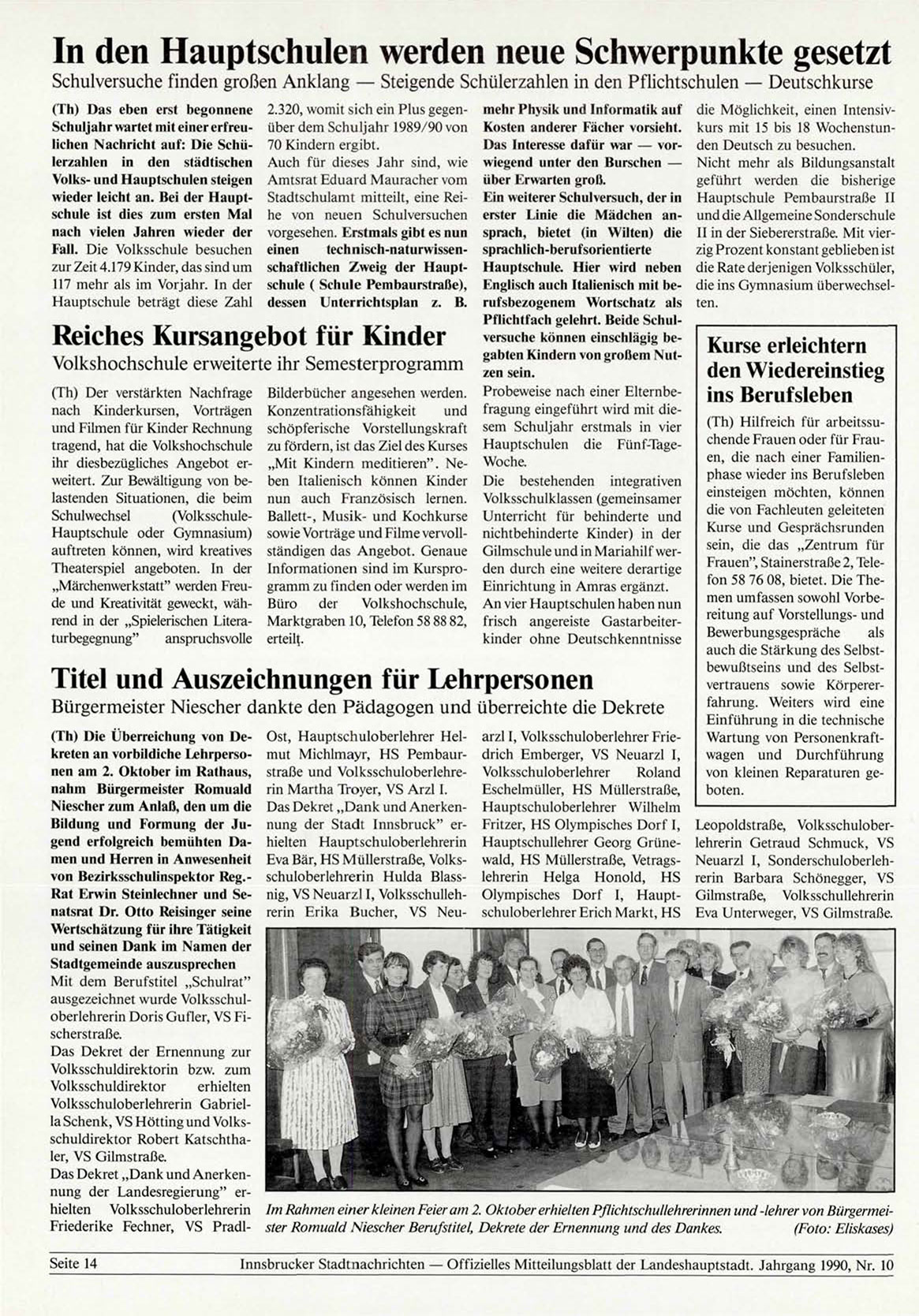 Innsbrucker Stadtnachrichten — Offizielles Mitteilungsblatt der Landeshauptstadt. Jahrgang 1990, Nr. 10