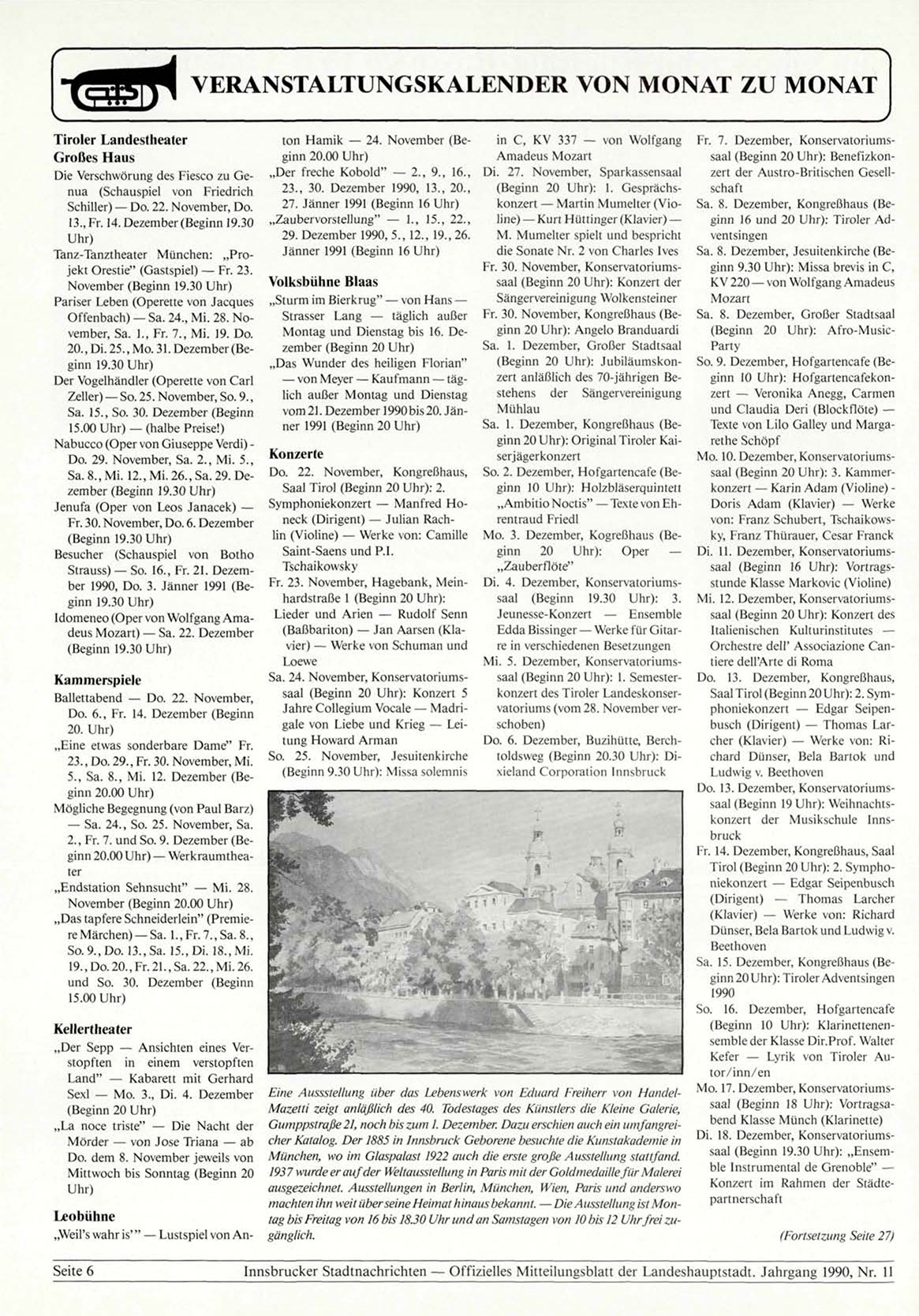 Innsbrucker Stadtnachrichten — Offizielles Mitteilungsblatt der Landeshauptstadt. Jahrgang 1990, Nr. 11