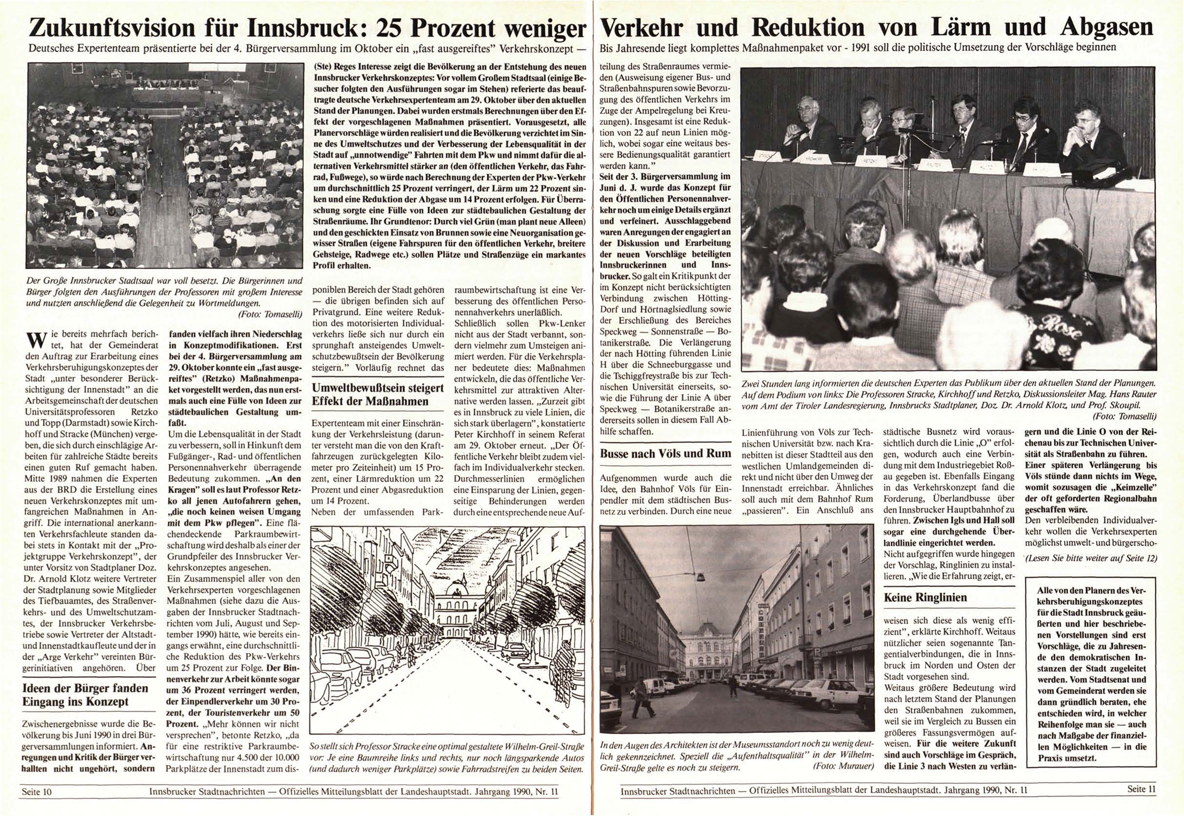 (Foto: Murauer) die Linie 3 nach Westen zu verlänInnsbrucker Stadtnachrichten — Offizielles Mitteilungsblatt der Landeshauptstadt. Jahrgang 1990, Nr. 11