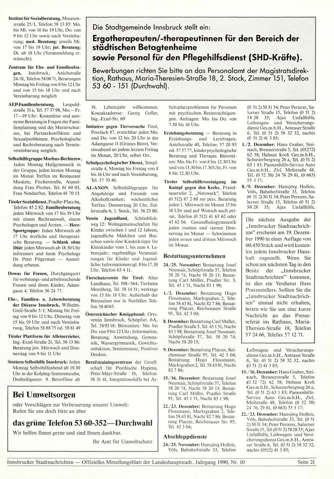 Innsbrucker Stadtnachrichten — Offizielles Mitteilungsblatt der Landeshauptstadt. Jahrgang 1990, Nr. 10