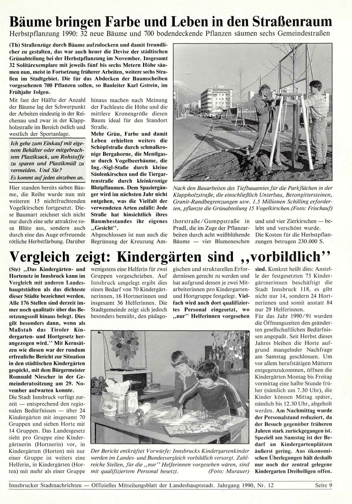 Innsbrucker Stadtnachrichten — Offizielles Mitteilungsblatt der Landeshauptstadt. Jahrgang 1990, Nr. 12