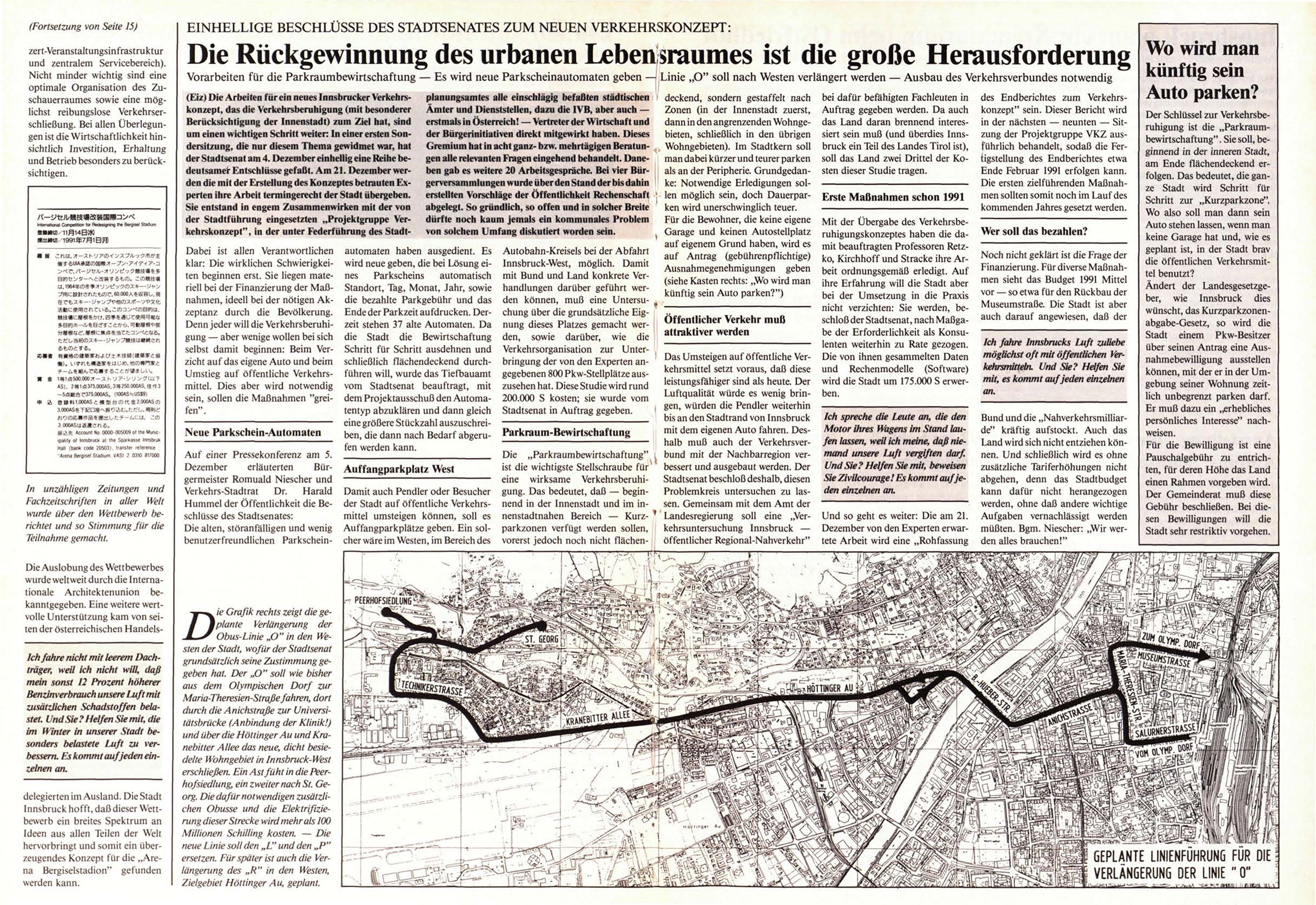 der Stadtsenat am 4. Dezember einhellig eine Reihe bedeutsamer Entschlüsse gefaßt. Am 21. Dezember werden die mit der Erstellung des Konzeptes betrauten Experten ihre Arbeit termingerecht der Stadt übergeben.