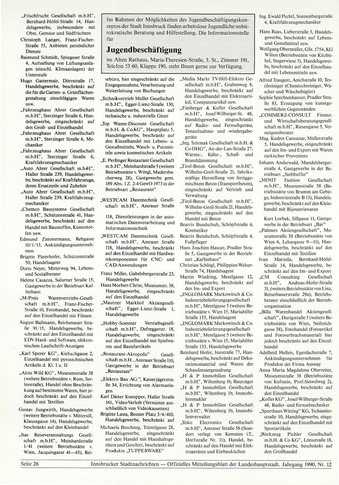 Innsbrucker Stadtnachrichten — Offizielles Mitteilungsblatt der Landeshauptstadt. Jahrgang 1990, Nr. 12