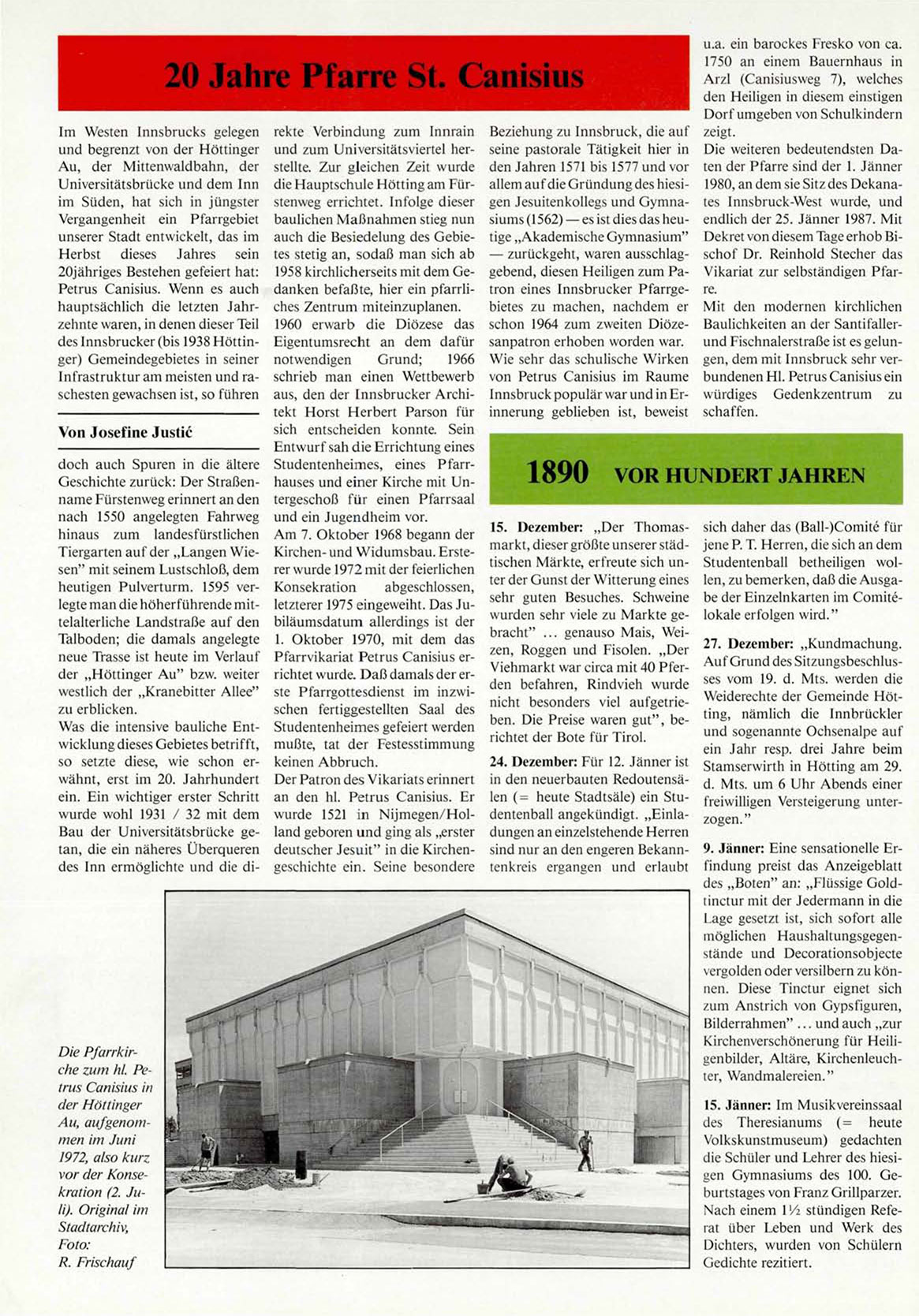 Baulichkeiten an der Santifallerund Fischnalerstraße ist es gelungen, dem mit Innsbruck sehr verbundenen Hl. Petrus Canisius ein