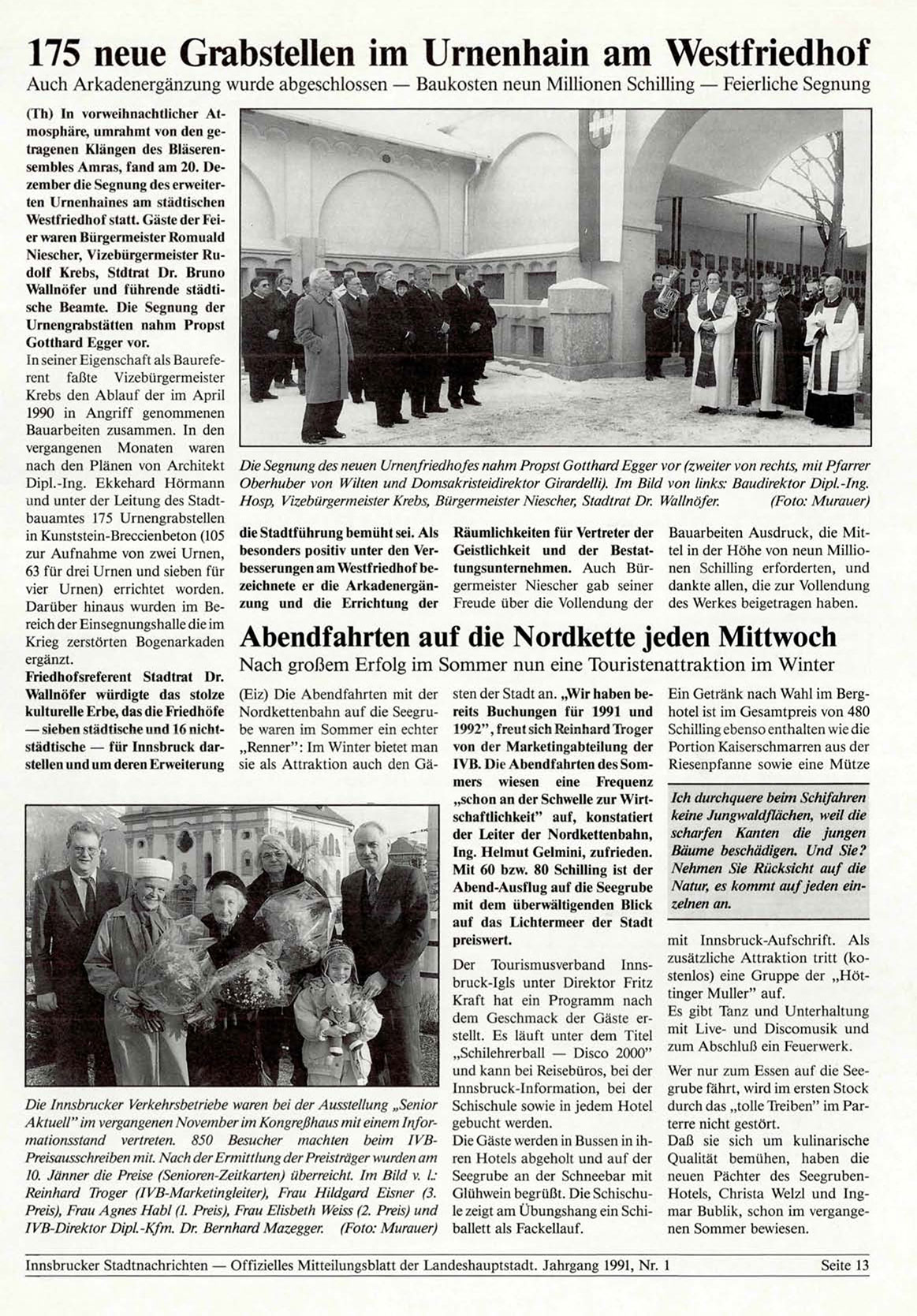 Innsbrucker Stadtnachrichten — Offizielles Mitteilungsblatt der Landeshauptstadt. Jahrgang 1991, Nr. 1