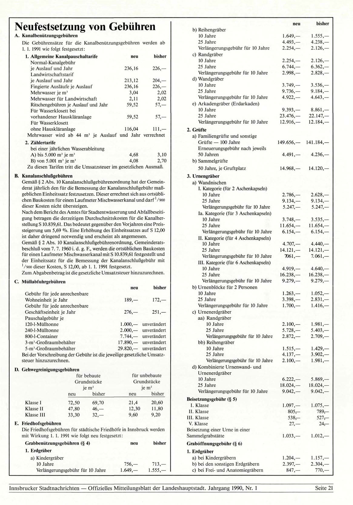 Innsbrucker Stadtnachrichten — Offizielles Mitteilungsblatt der Landeshauptstadt. Jahrgang 1990, Nr. 1