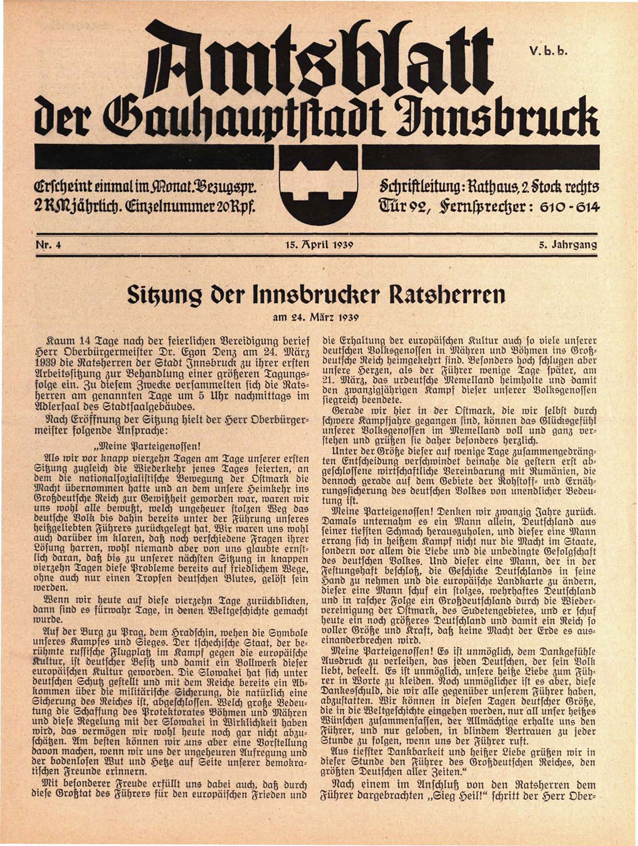 1939 die Ratsherren der Stadt Innsbruck Zu ihrer ersten