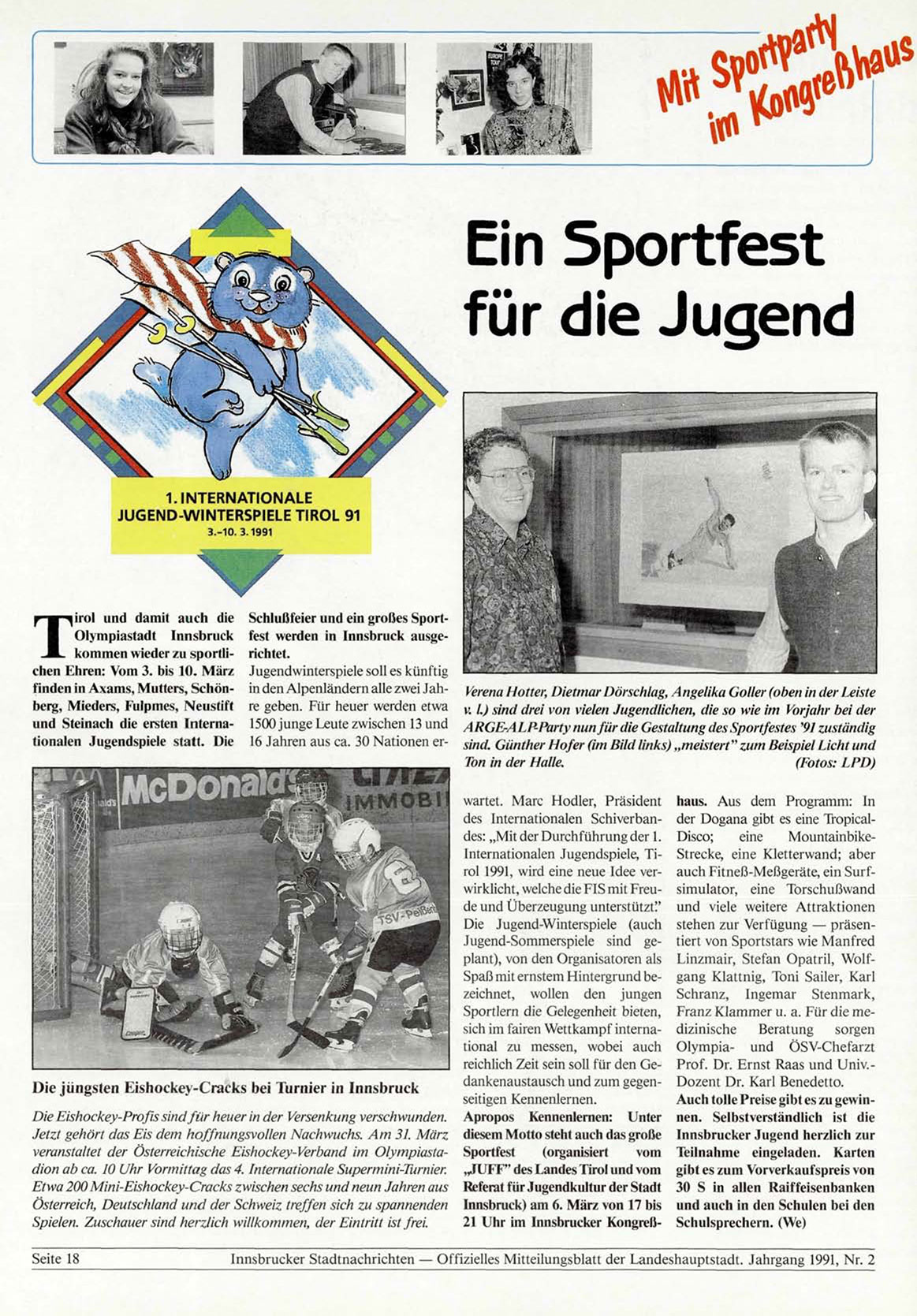 Innsbrucker Stadtnachrichten — Offizielles Mitteilungsblatt der Landeshauptstadt. Jahrgang 1991, Nr. 2