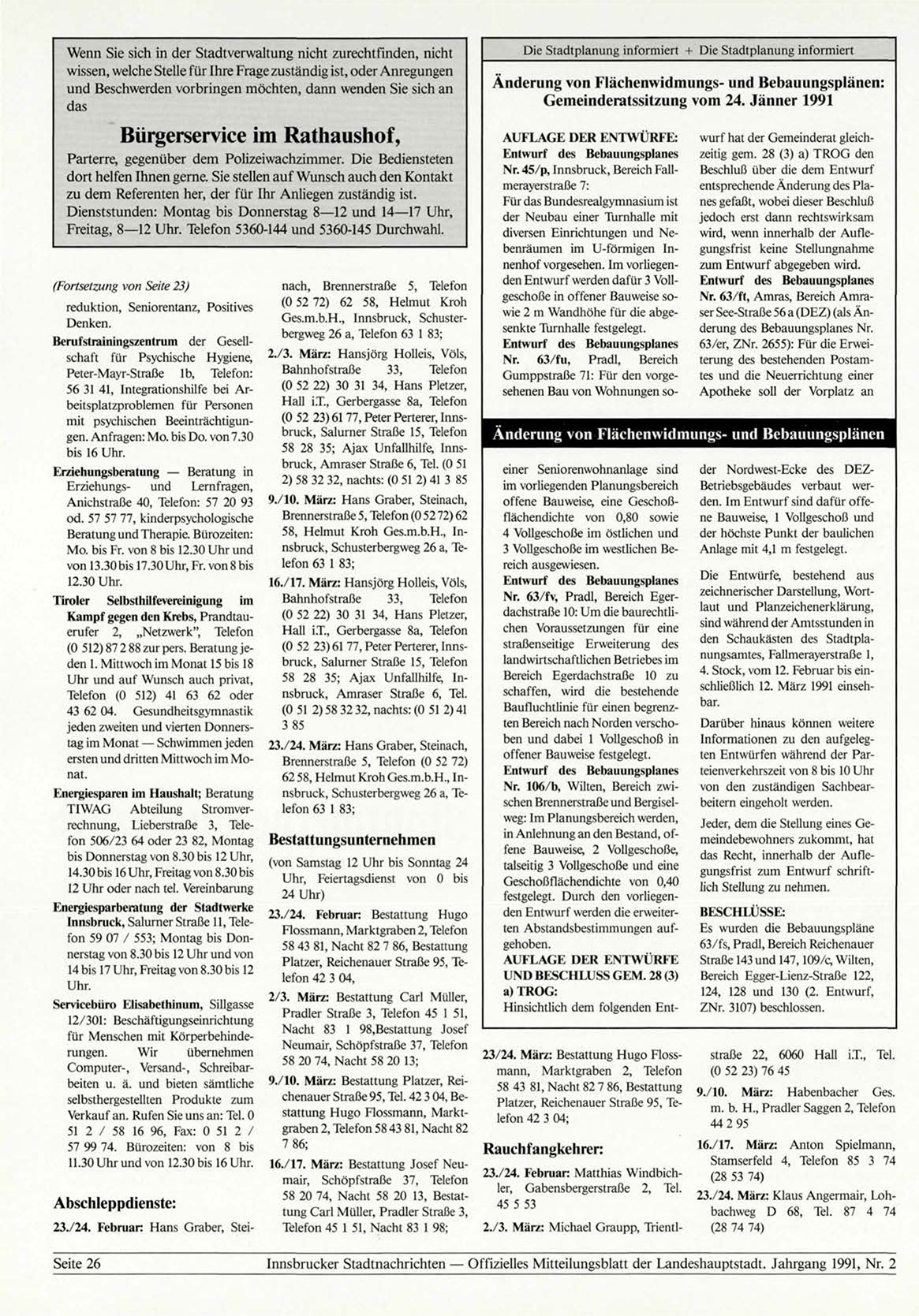 Innsbrucker Stadtnachrichten — Offizielles Mitteilungsblatt der Landeshauptstadt. Jahrgang 1991, Nr. 2